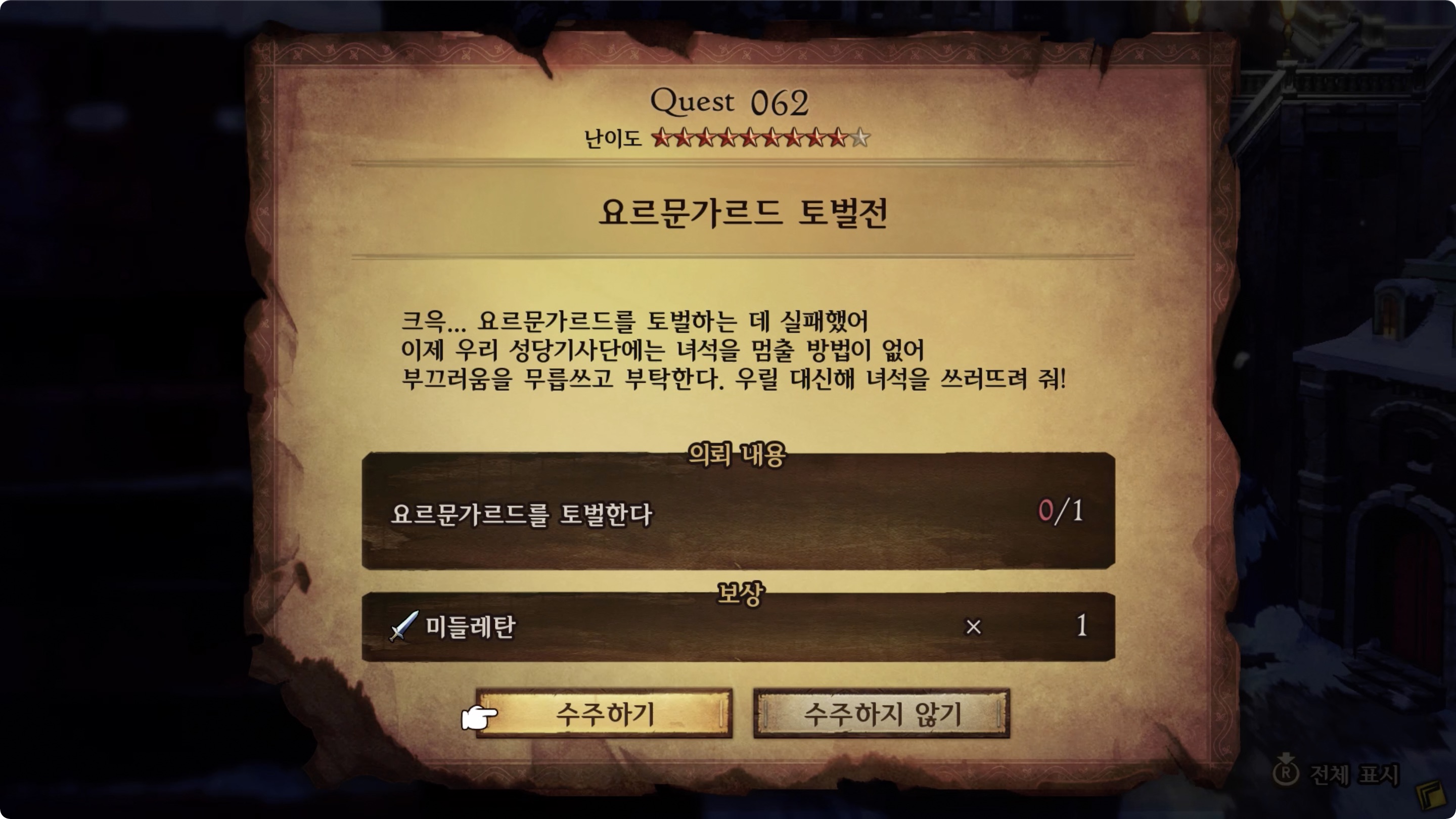 | 의뢰 내용 | 요르문가르드를 토벌한다 0/1 |