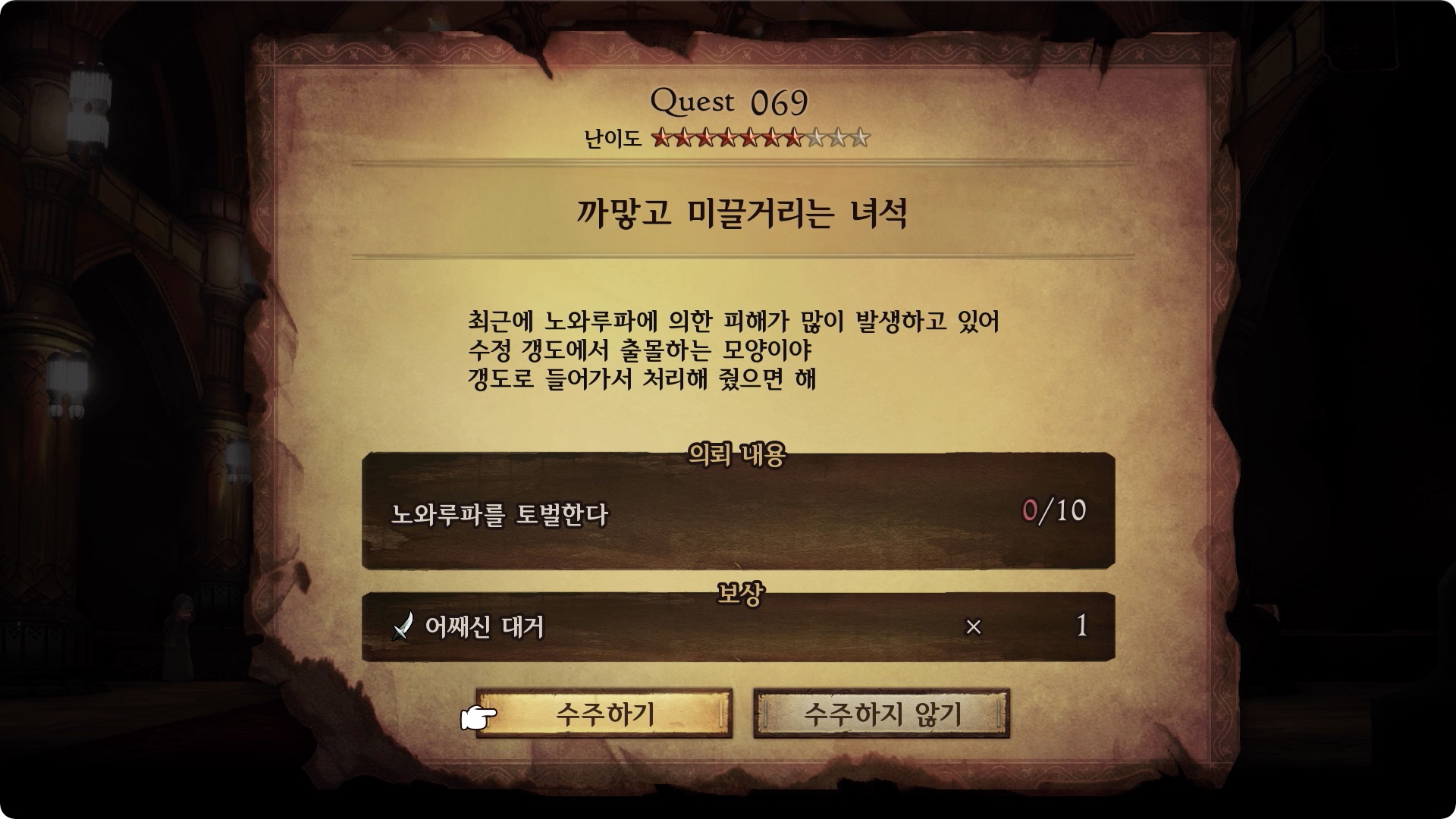 | 의뢰 내용 | 노와루파를 토벌한다 0/10 |