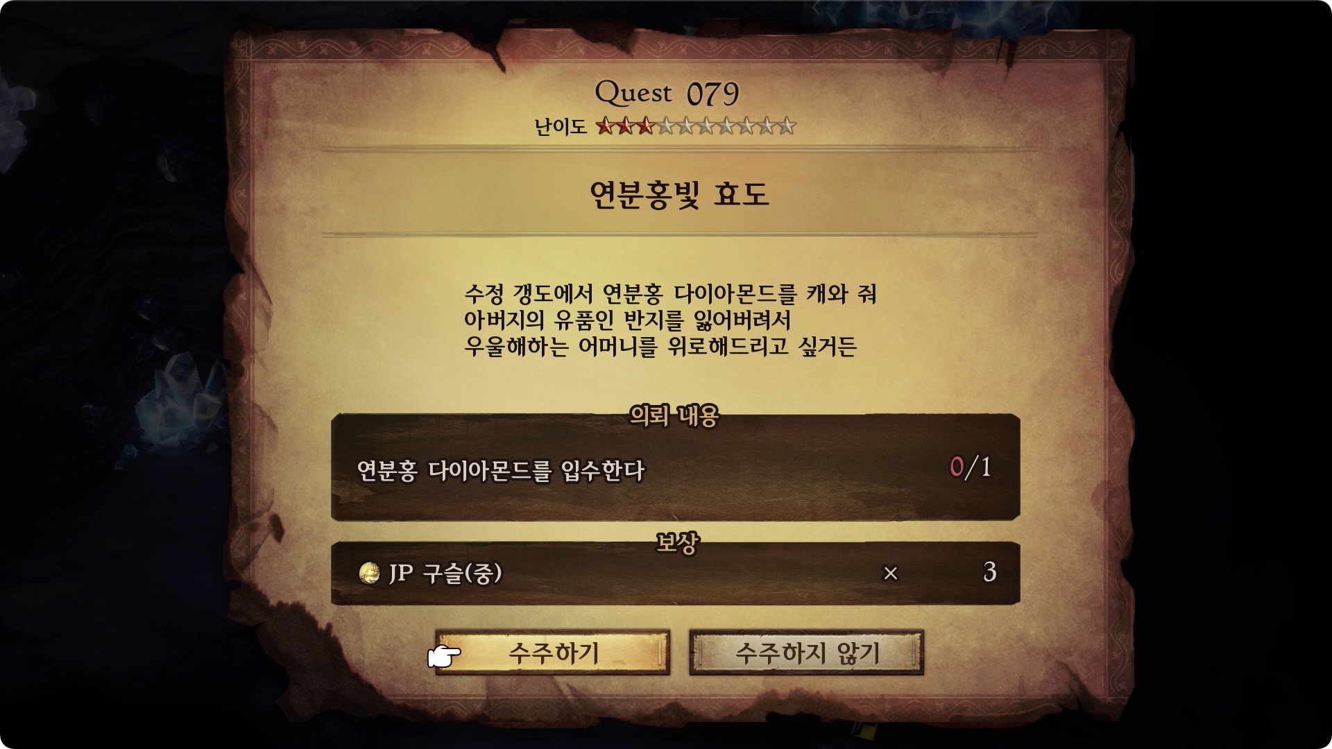 | 의뢰 내용 | 연분홍 다이아몬드를 입수한다 0/1 |