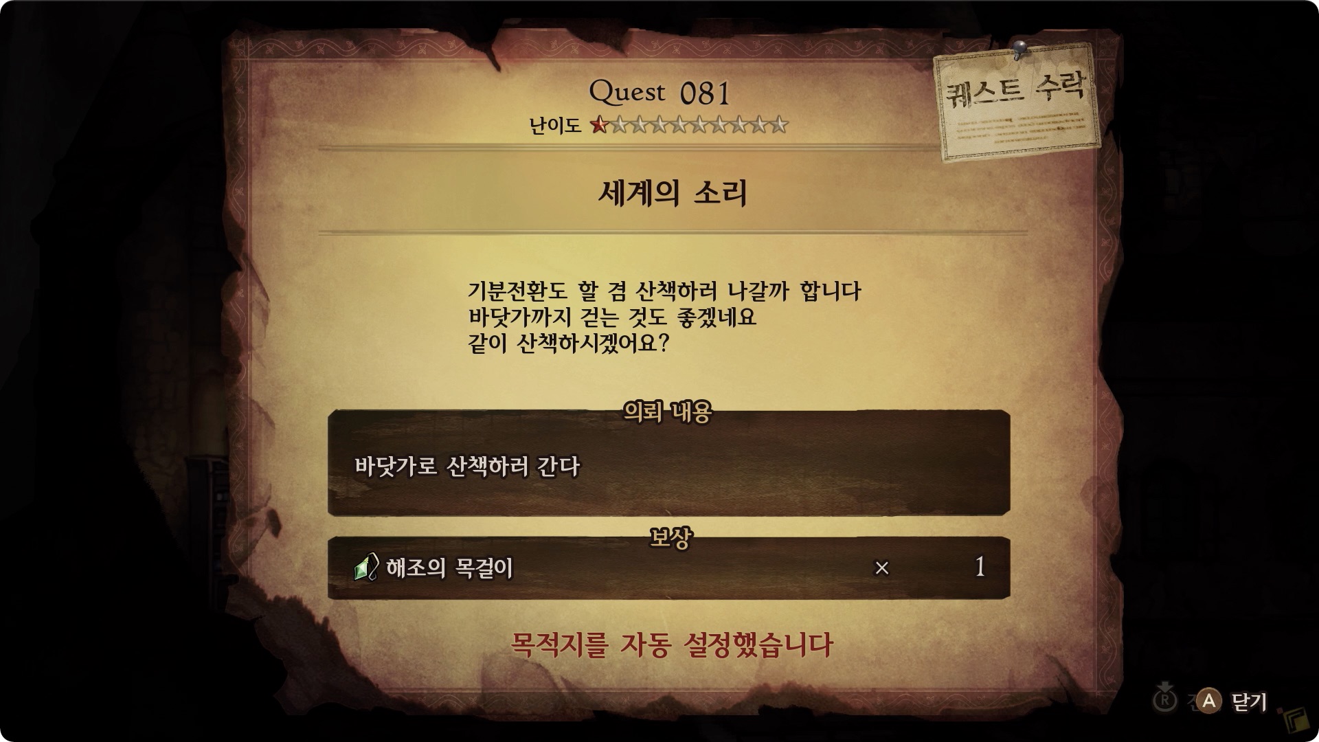 | 보상 | 해조의 목걸이 x1 |