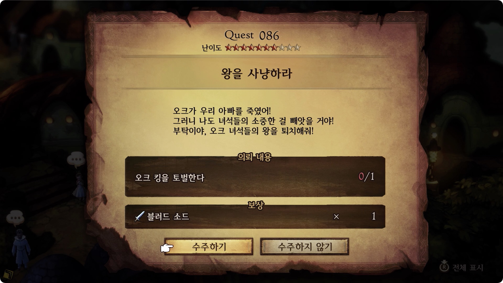 | 의뢰 내용 | 오크 킹을 토벌한다 0/1 |