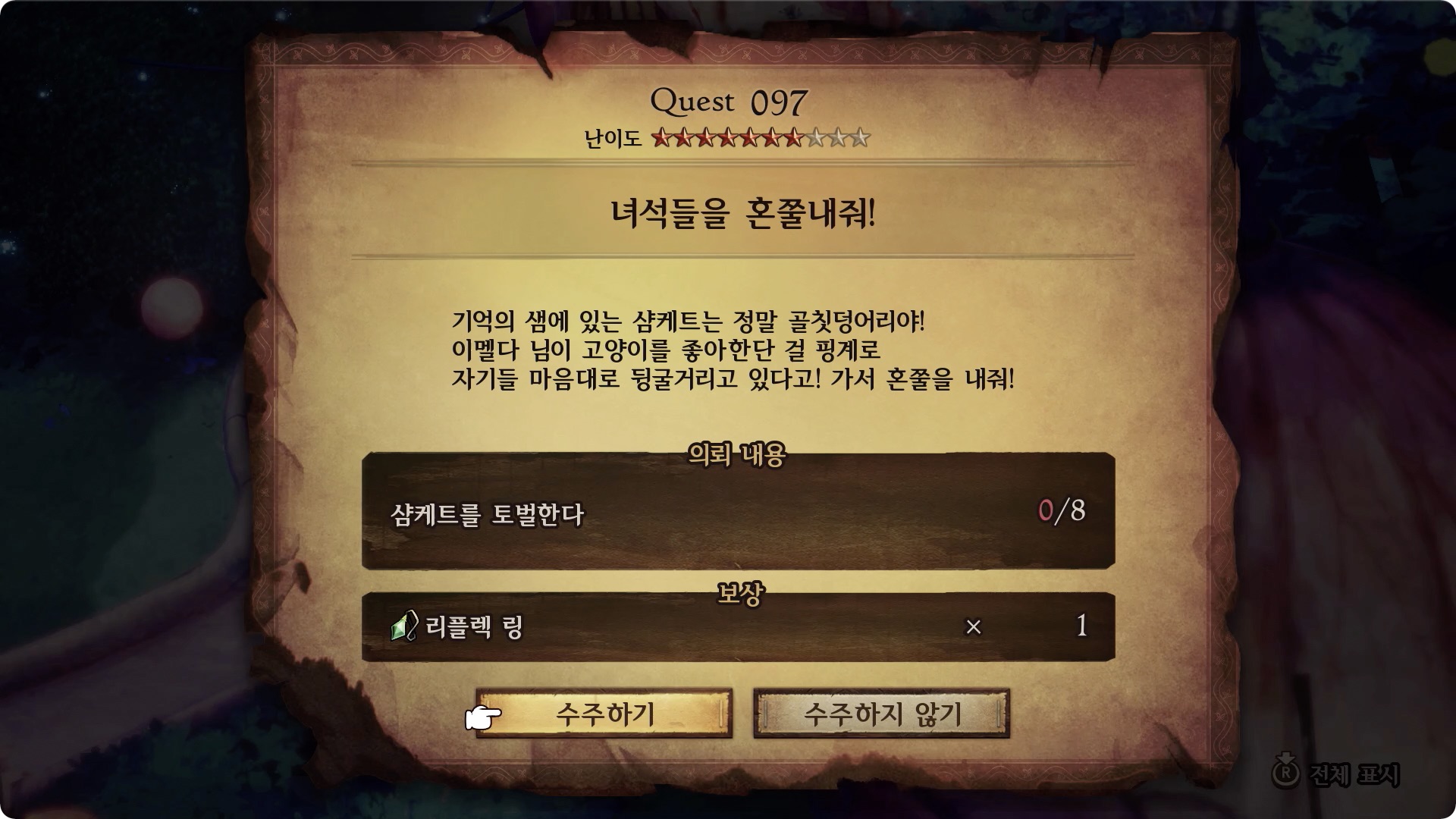 | 의뢰 내용 | 샴케트를 토벌한다 0/8 |