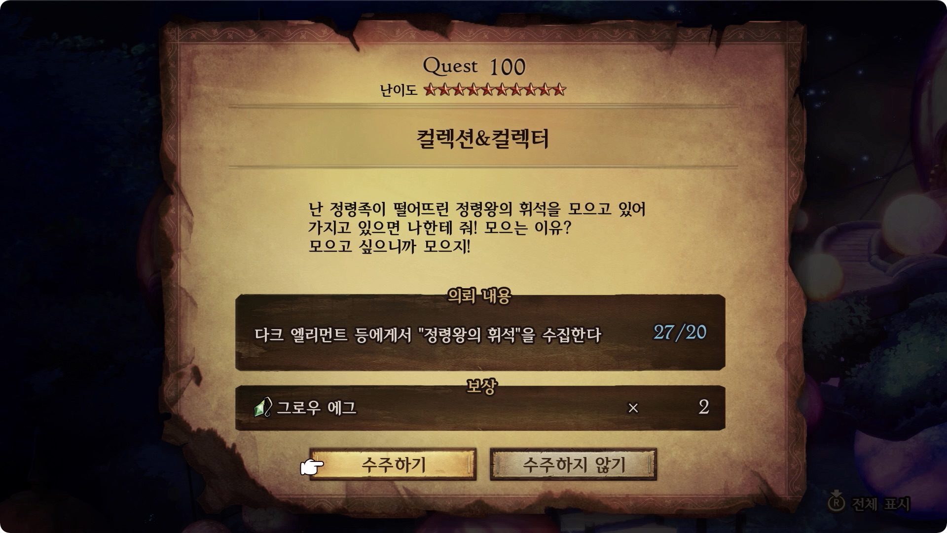 (1) 다크 엘리먼트 등에게서 "정령왕의 휘석"을 수집한다 0/20