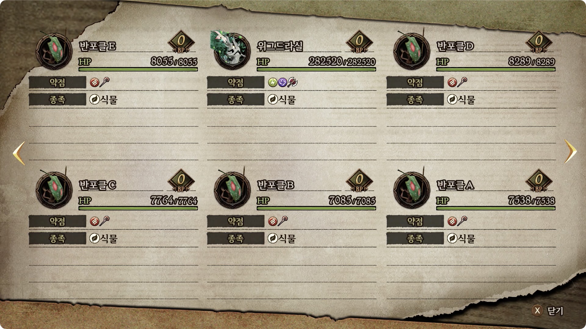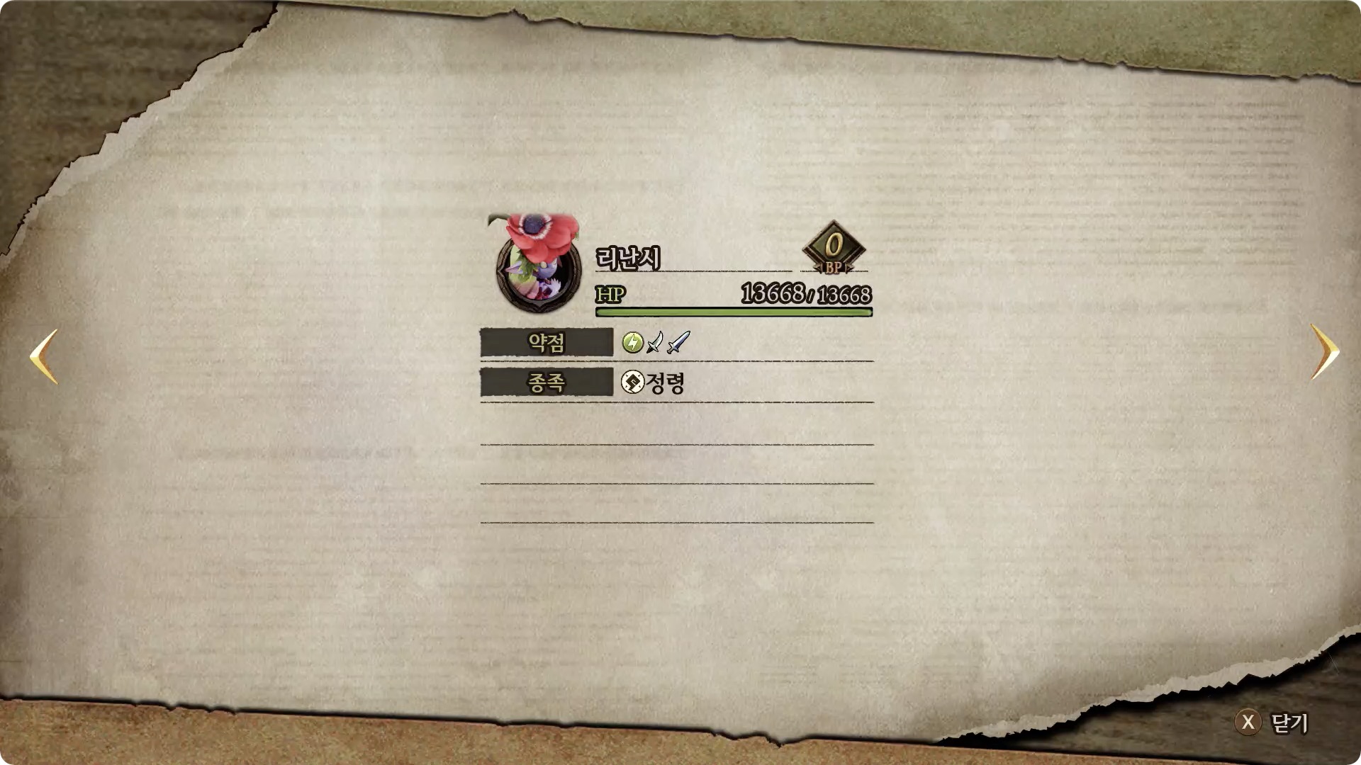 [약점] 도끼, 번개, 어둠 | [드롭1] 인면수의 냄새나는 꽃 (100%) |