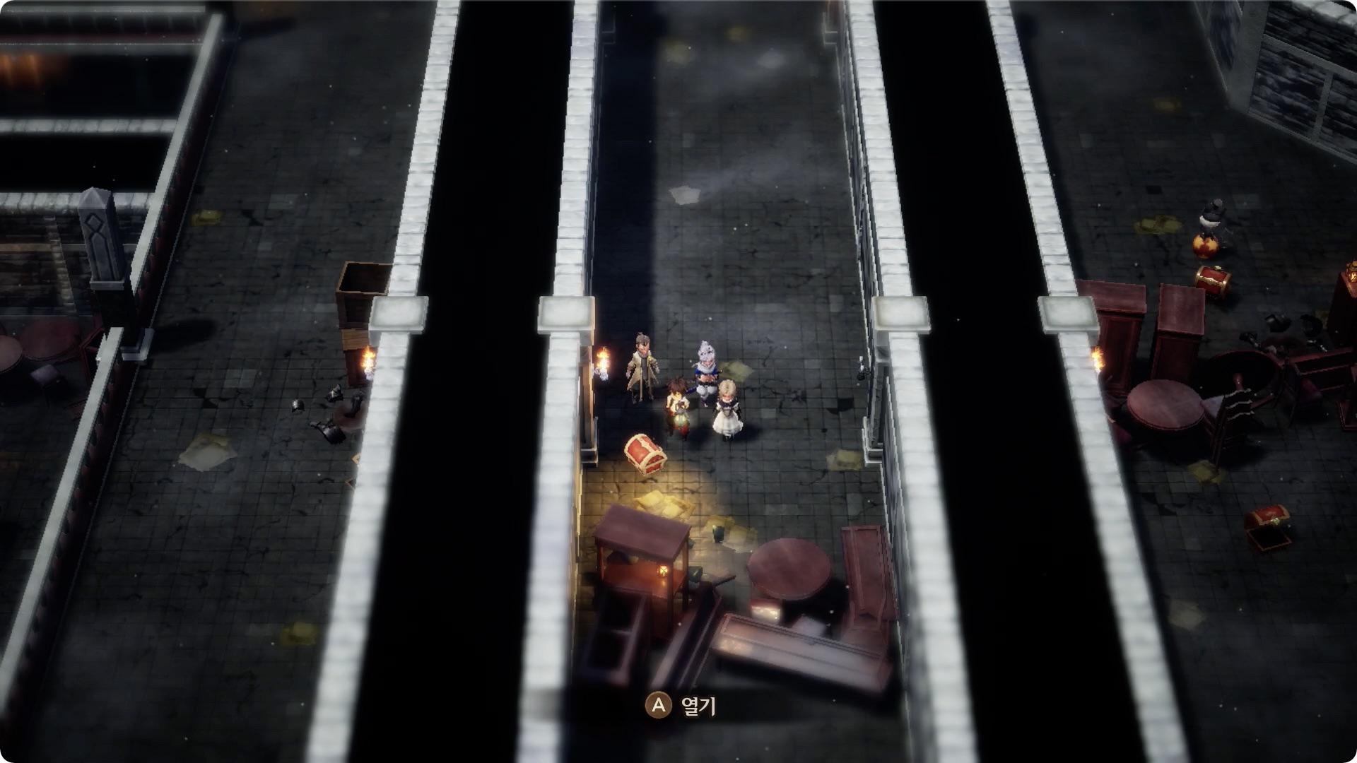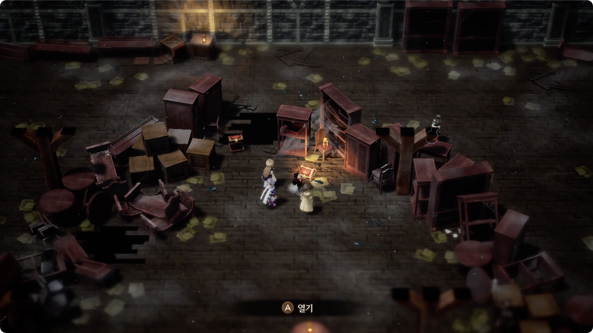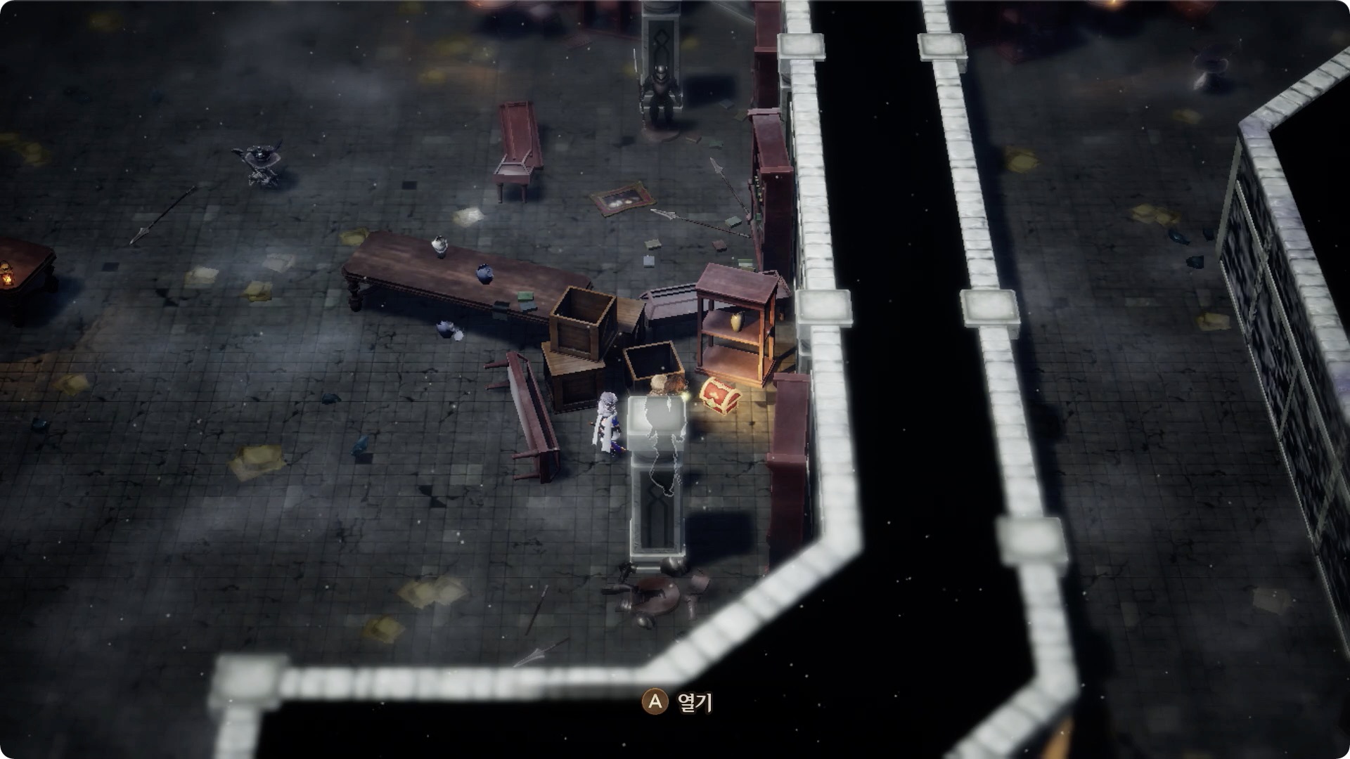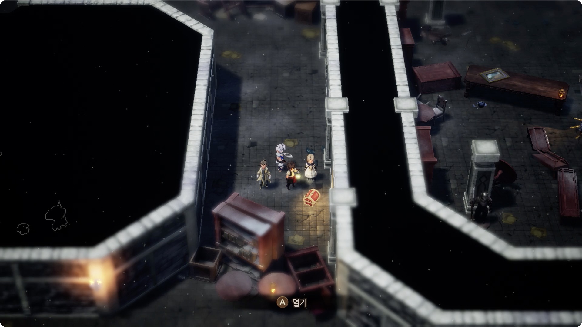 [1] 1층 왼쪽 입구로 들어간 후, 가장 먼저 보이는 보물상자. 막힌 길은 왼쪽의 방을 통해 돌아서 갈 수 있다.