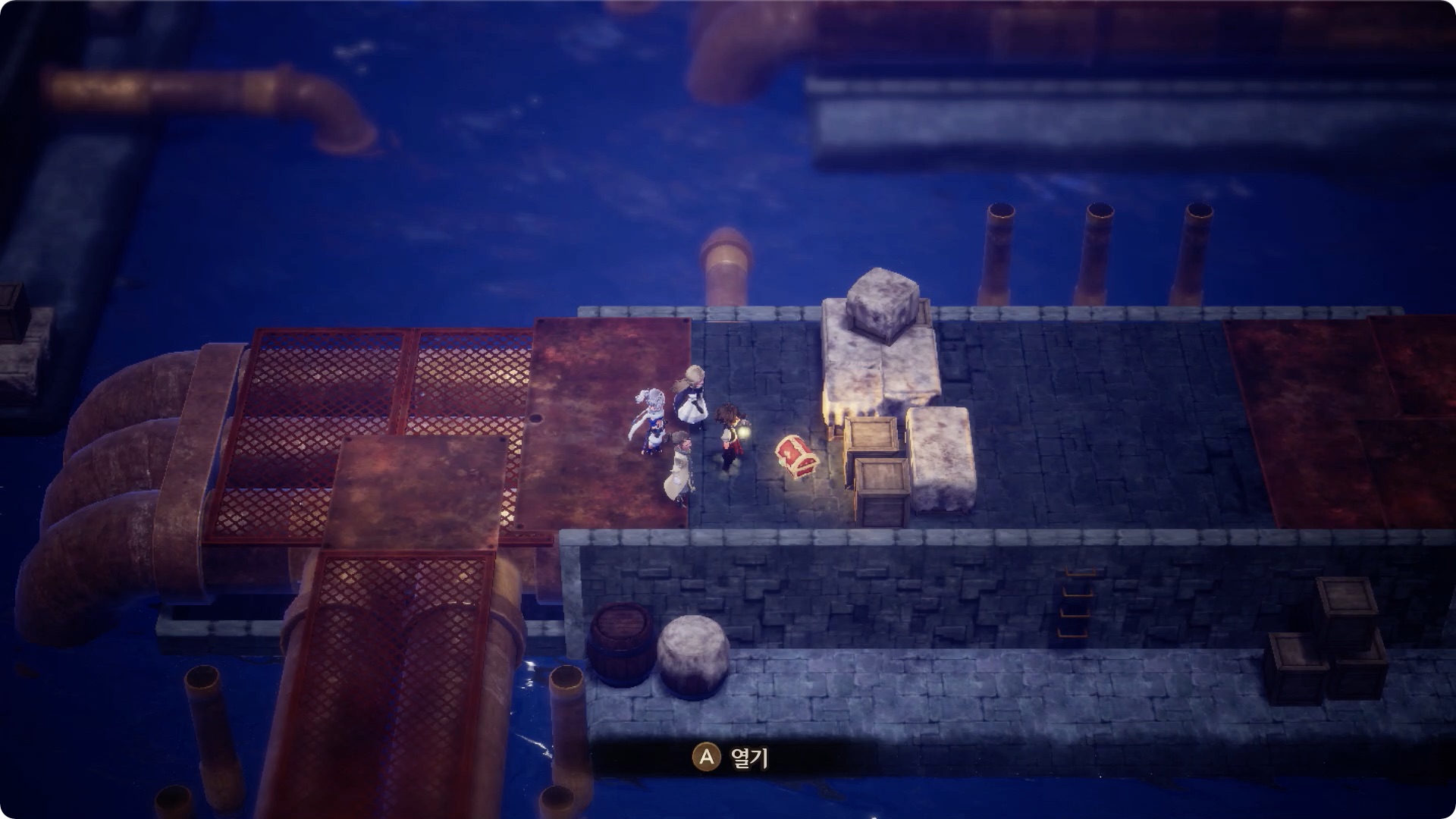 [3] 2번 보물상자 획득 후, 돌아오는길에 위쪽방향으로 한칸만 이동한 후 오른쪽으로 이동. 빨간 다리가 보이면 아래쪽으로 내려온 후 왼쪽.