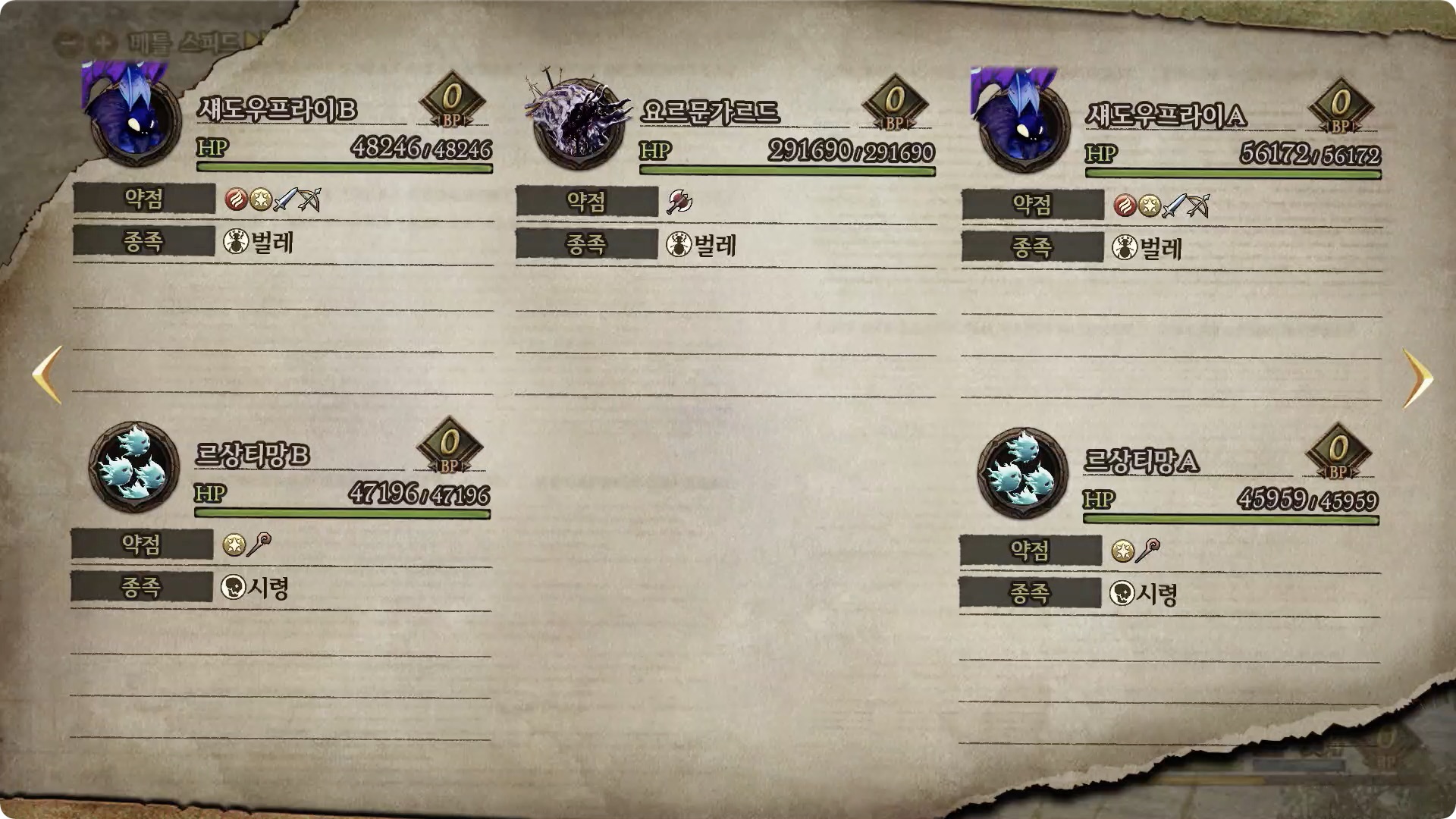 [약점] 단검, 활, 바람 | [드롭1] 마녀의 한숨 (100% |