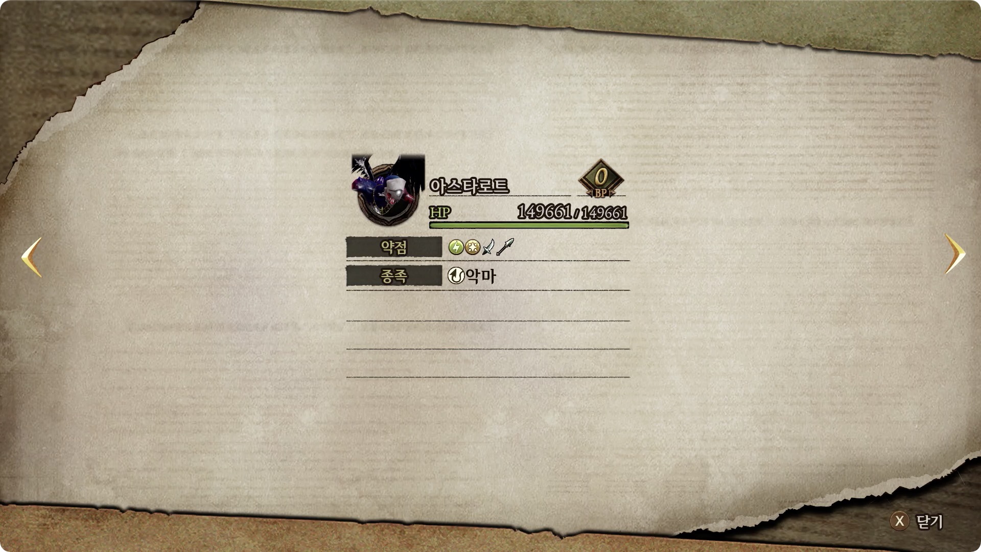 [약점] 단검, 창, 번개, 빛 | [드롭1] 마신의 둥근 뿔 (100%) |