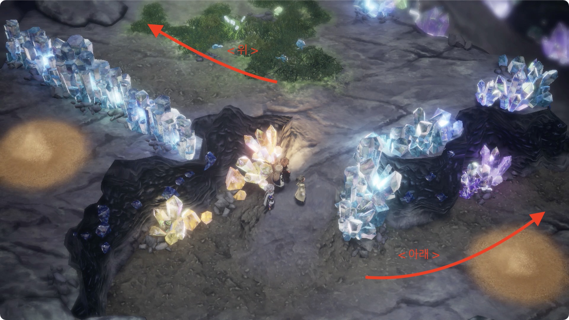 4번 보물상자 입수 후 오른쪽의 수정 아래쪽 길을 따라 이동