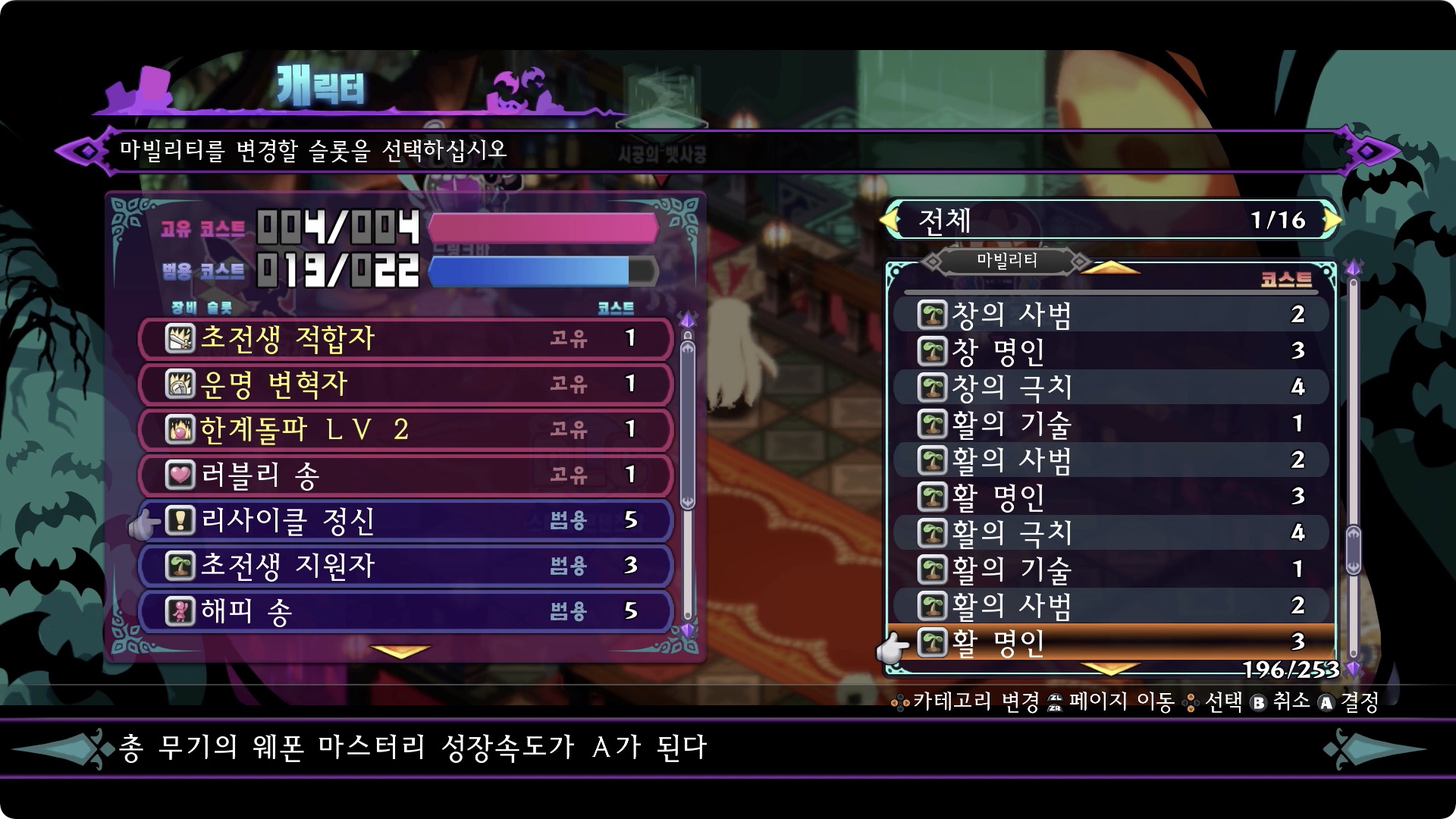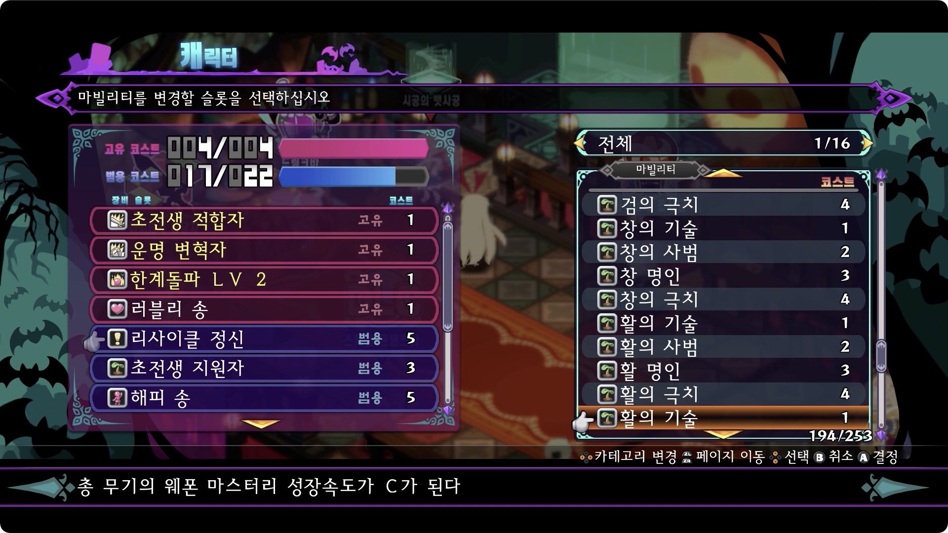 전혀 다른 무기 마빌리티를 세팅할 수 있으니 주의.