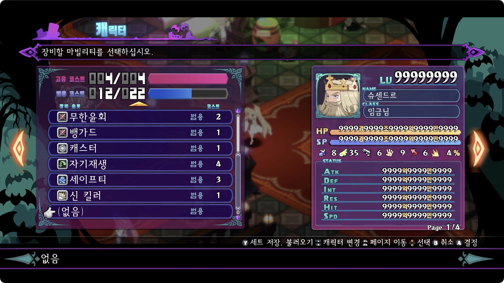 마지막 초전생을 진행 한 후, 다음과 같은 과정을 거쳐 모든 능력치를 9999~ 로 만들어 줄 수 있습니다