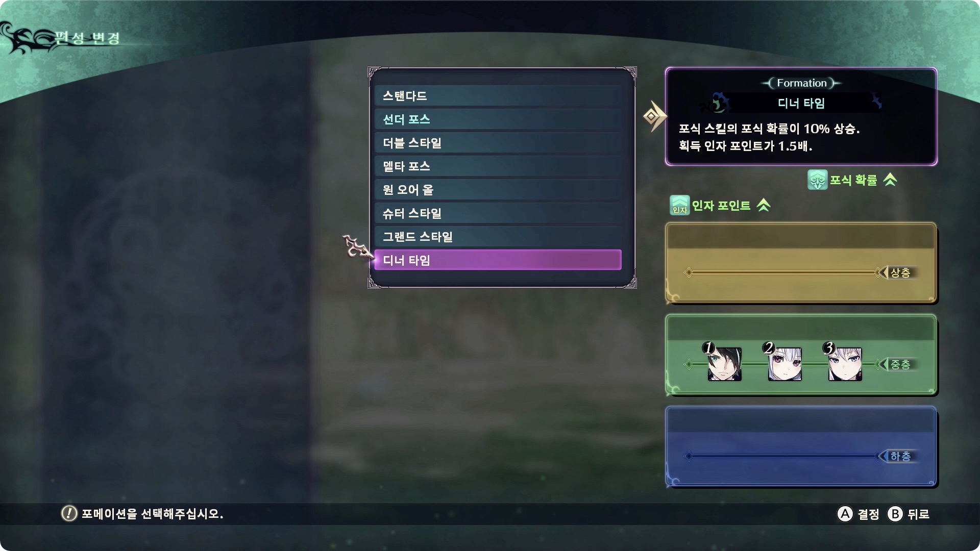 포메이션 : 디너 타임(포식 성공률 +10%)