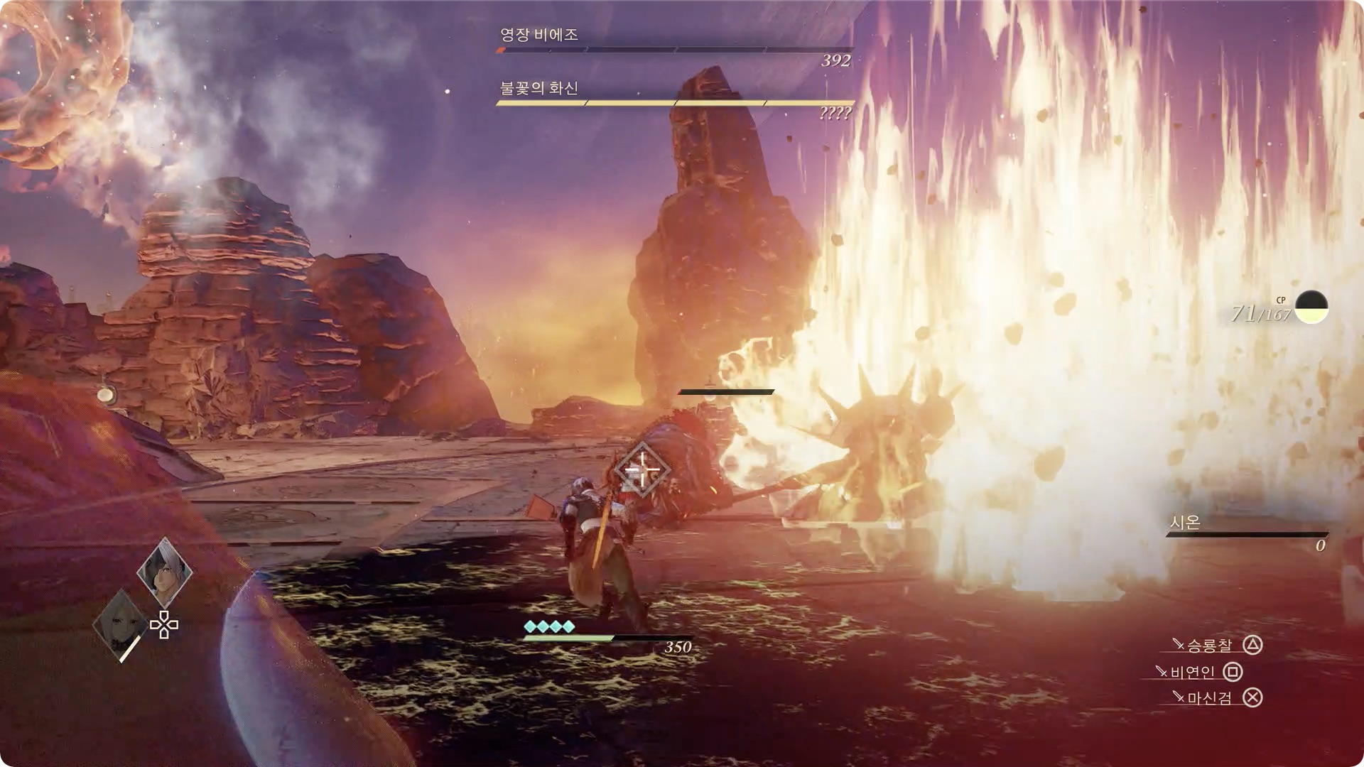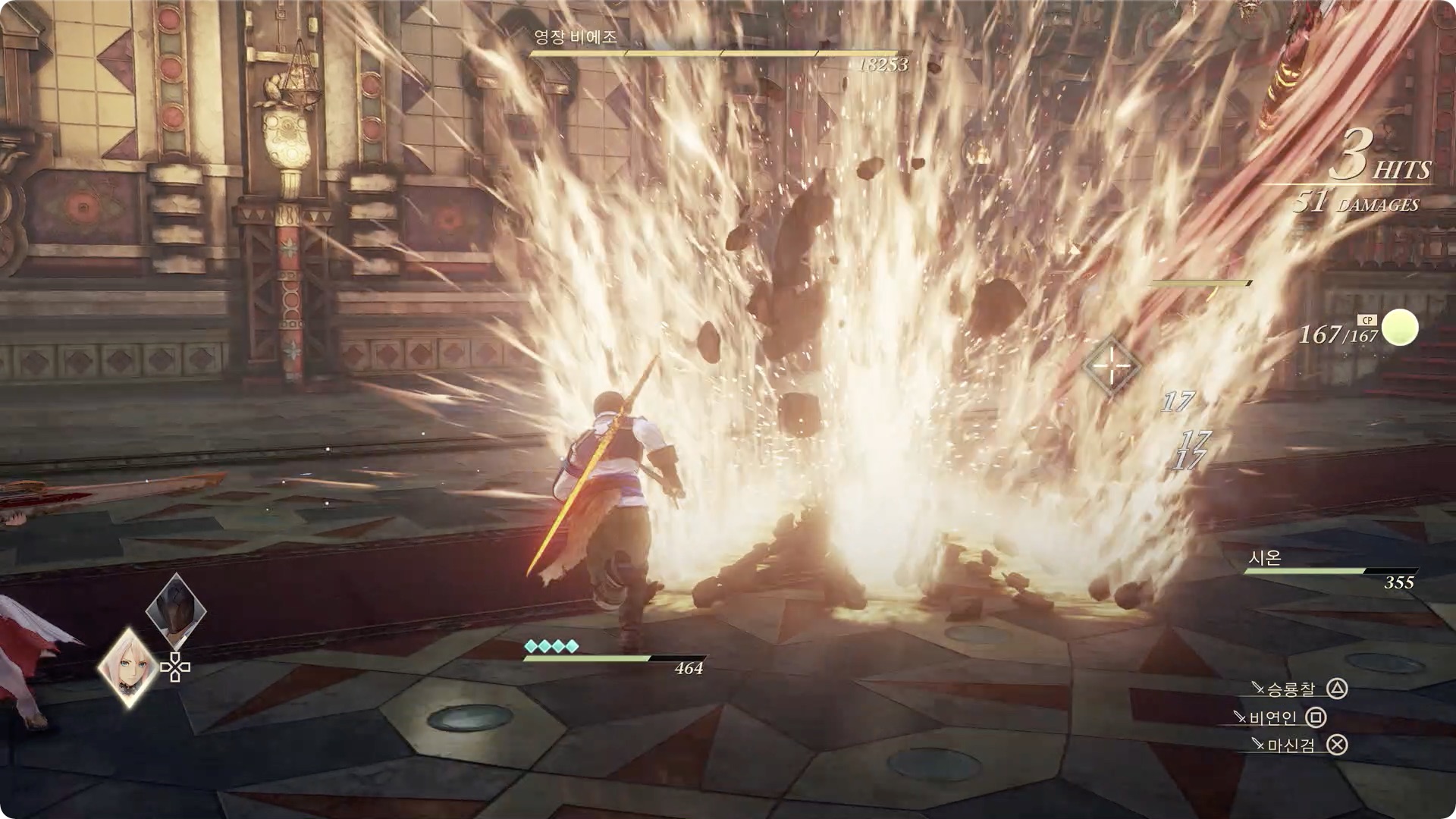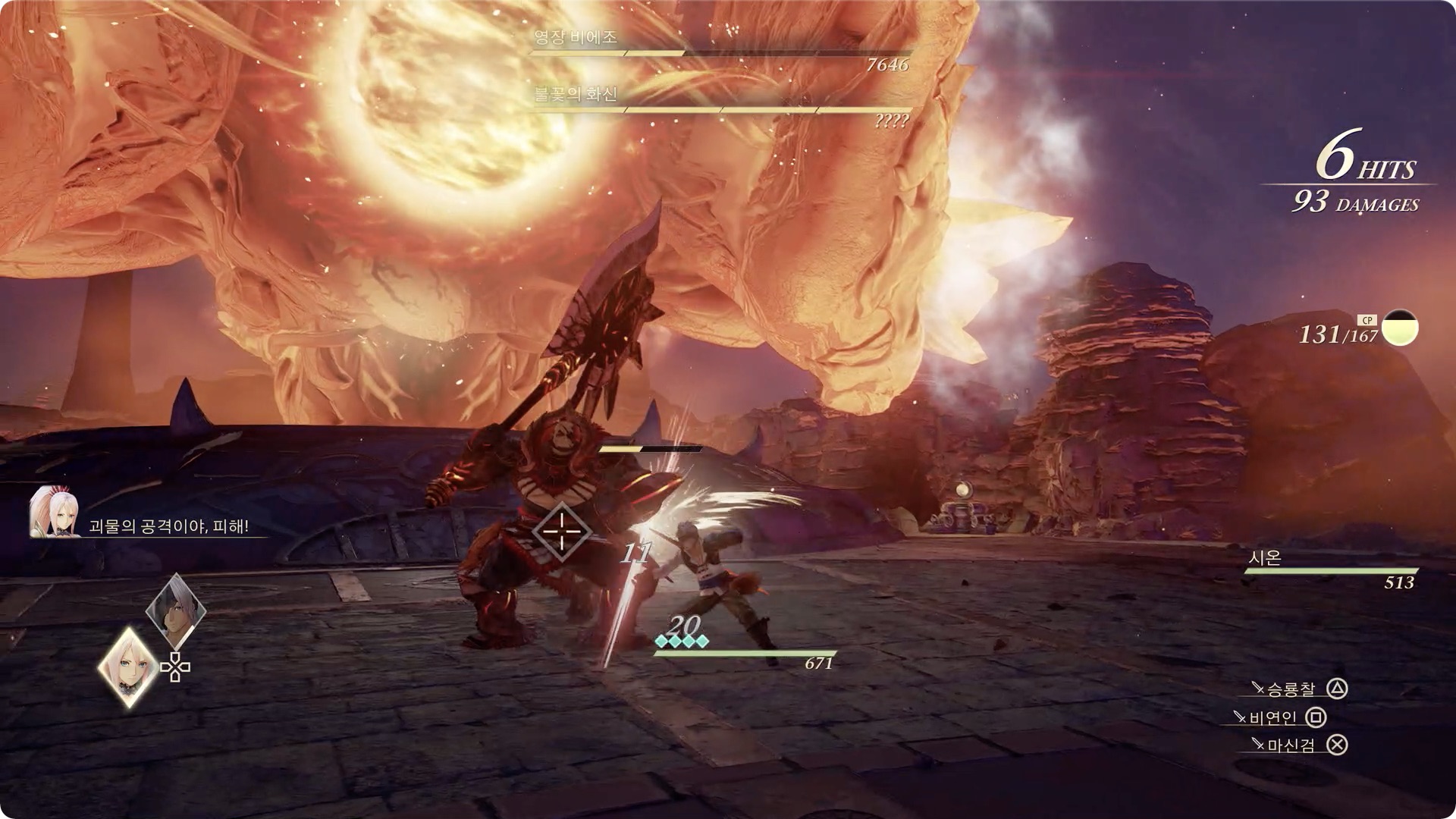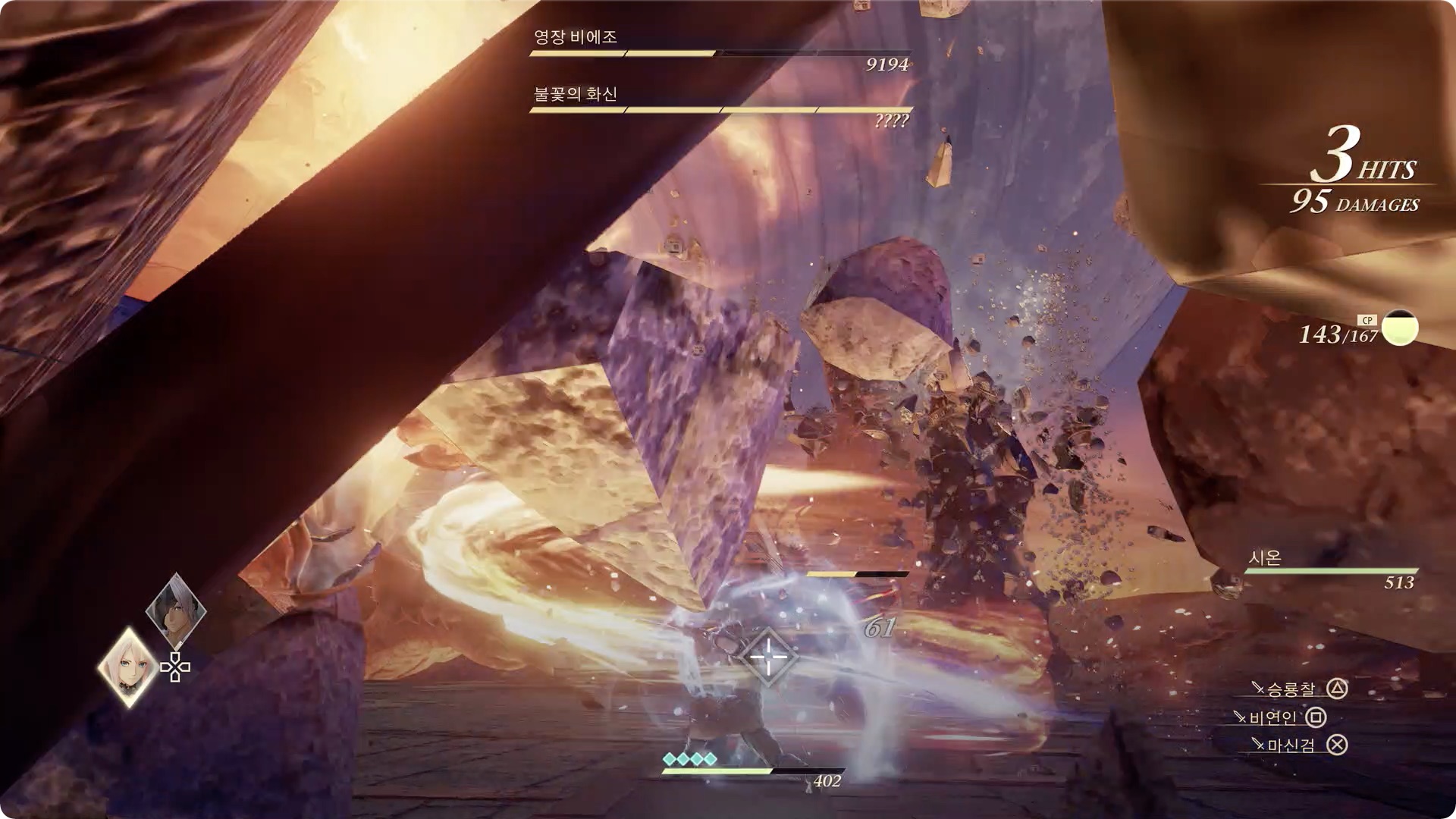 돌에 대미지를 주는 판정은 없지만 캐릭터가 휘청 거리니 이때 큰 공격을 당하지 않도록 타이밍을 맞춰 회피를 하거나 비에조와 떨어져 있는것이 좋습니다.
