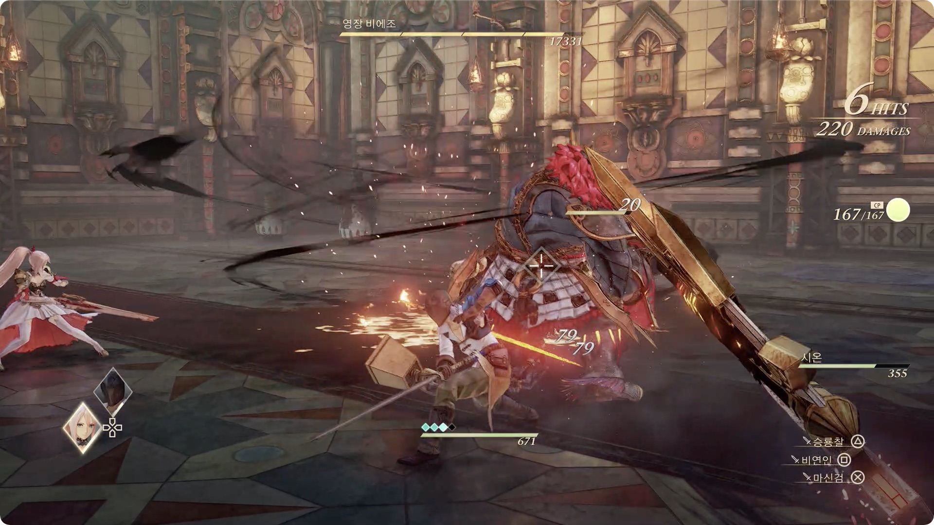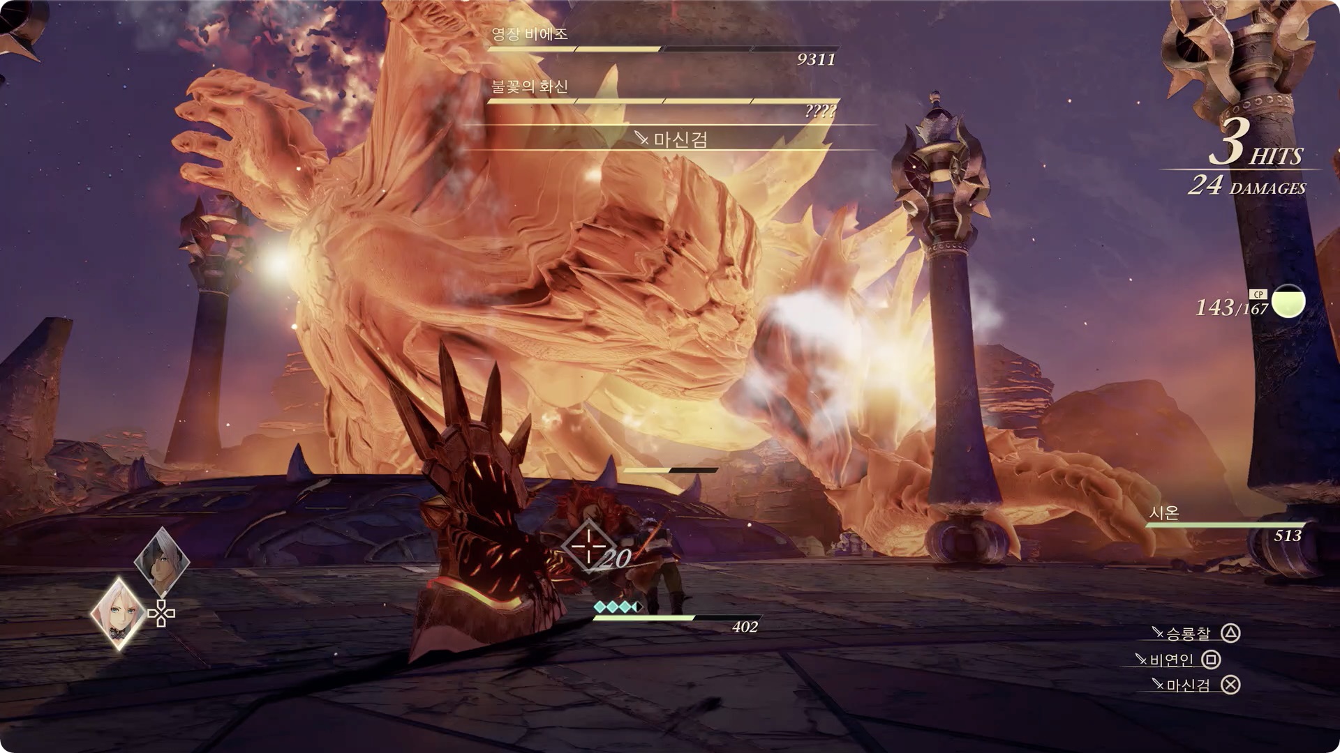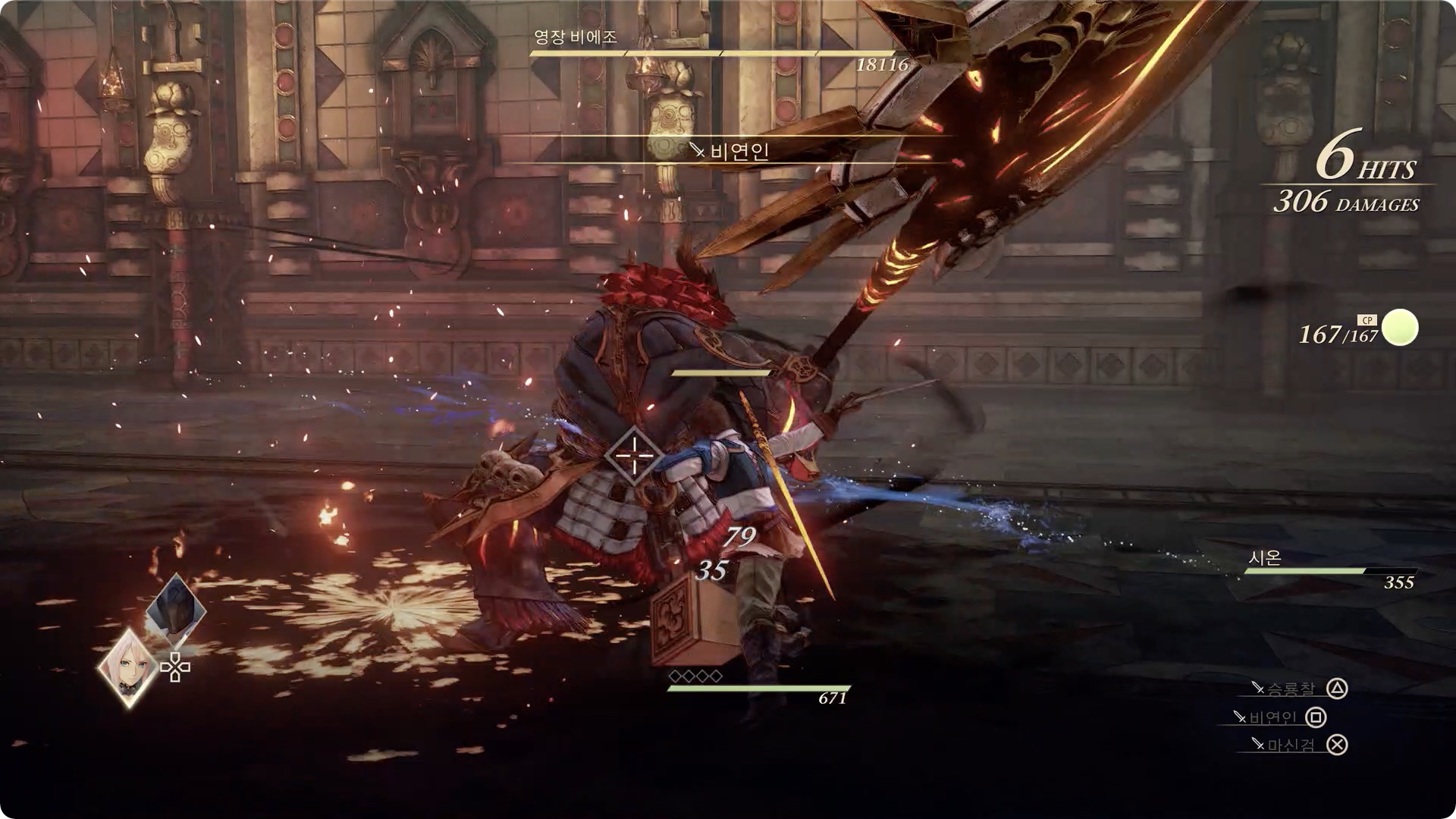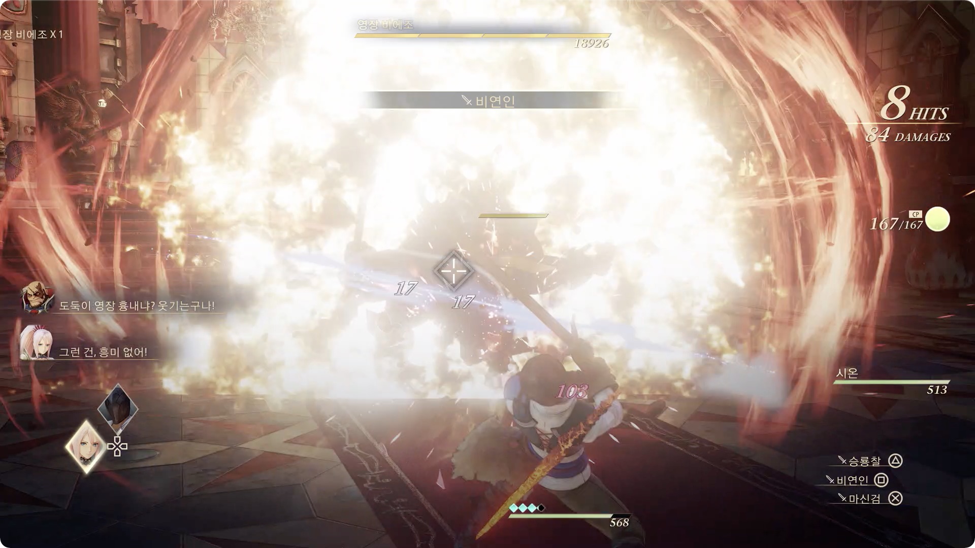 돌에 대미지를 주는 판정은 없지만 캐릭터가 휘청 거리니 이때 큰 공격을 당하지 않도록 타이밍을 맞춰 회피를 하거나 비에조와 떨어져 있는것이 좋습니다.