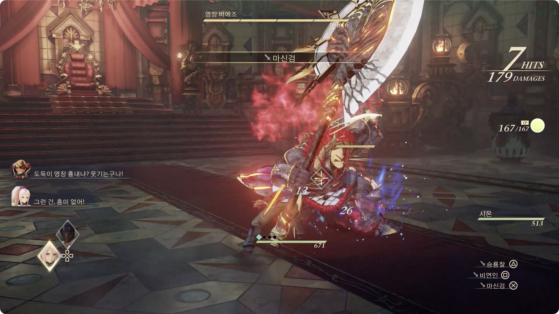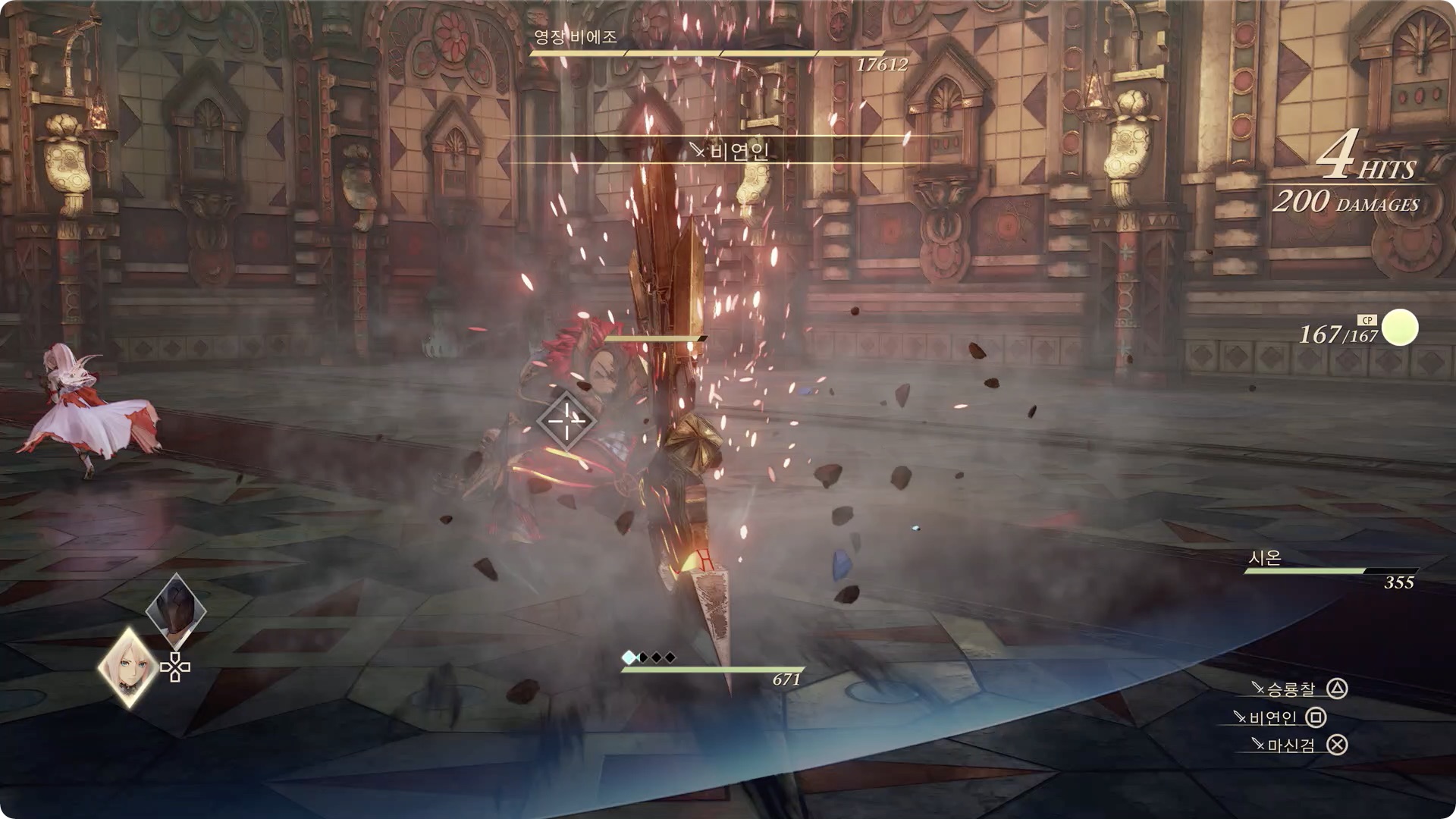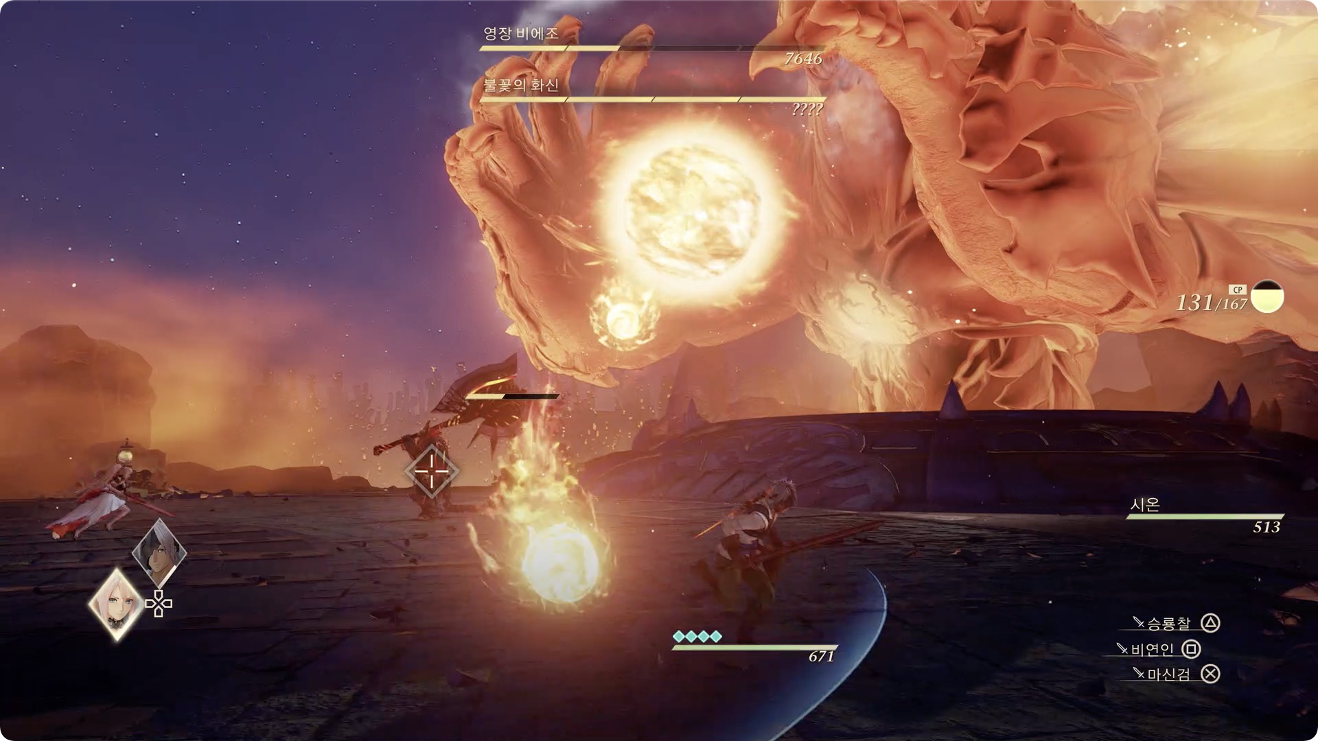 ※ 위 영상의 캐릭터 레벨은 8이었으며, 이 영상처럼 정면에서 다짜고짜 싸우기보단 거리를 벌려서 느긋하게 싸우라고 시온이 대화로 힌트를 줍니다 ※