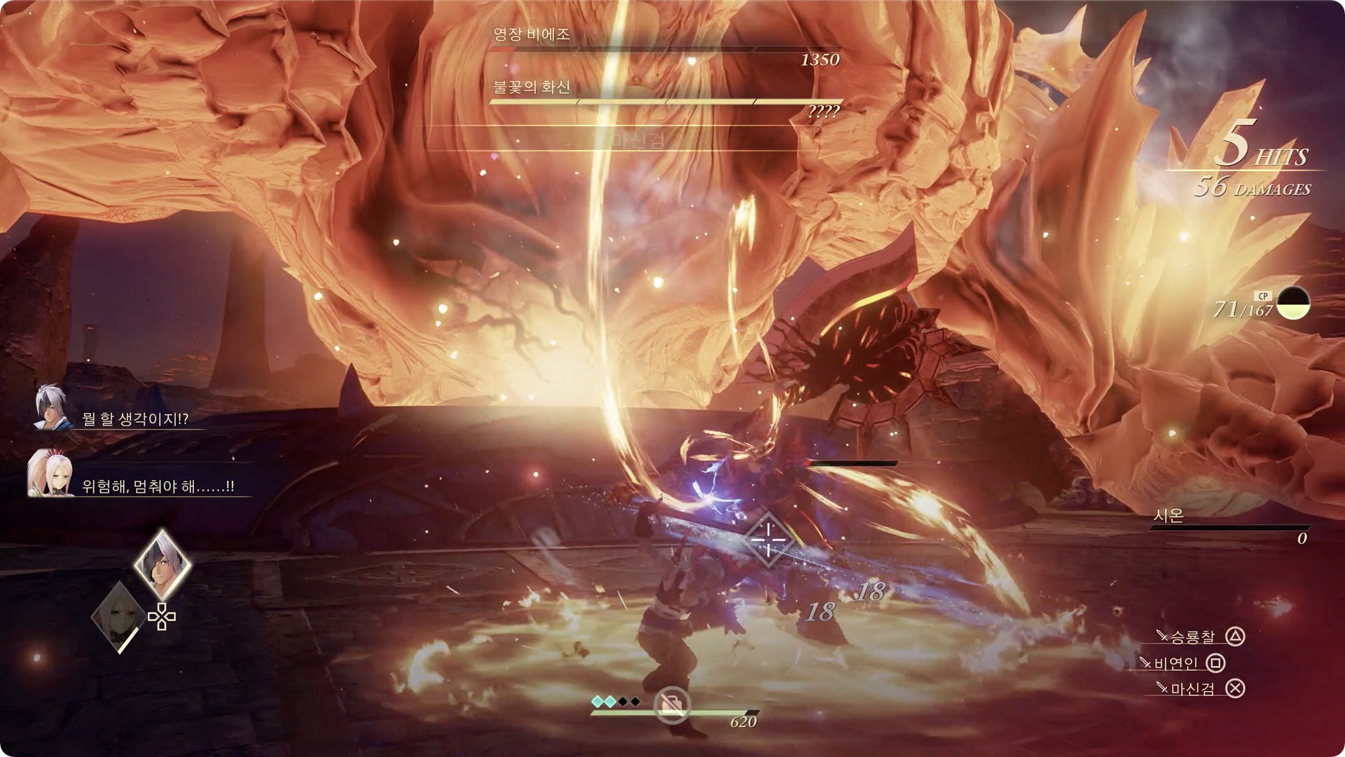이때 빠르게 공격하여 쓰러뜨릴수도 있지만 늦으면 전방으로 3갈래의 불기둥이 생기는 내려찍기 공격을 하게됩니다.