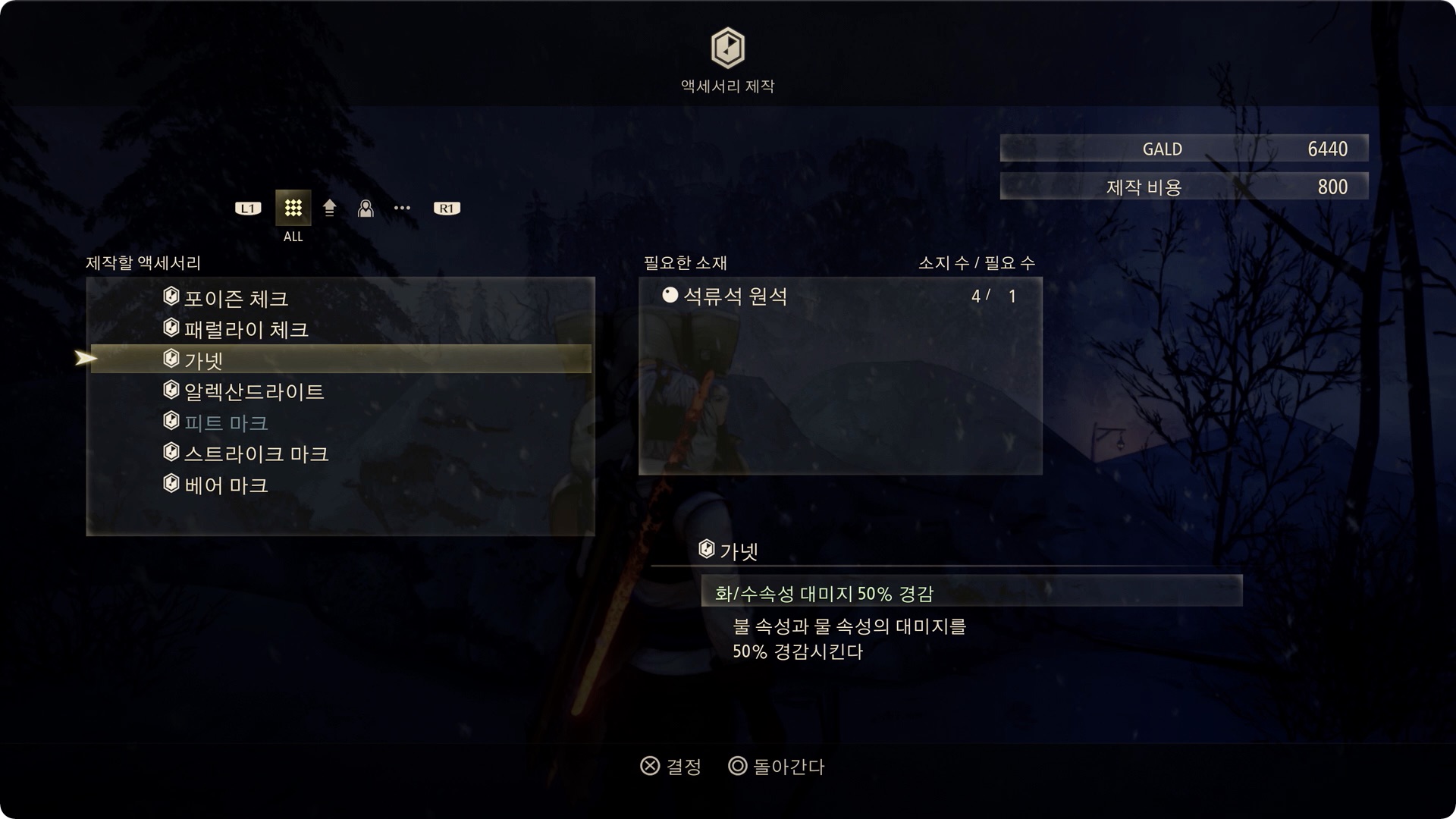 불 속성과 물 속성의 대미지를 50% 감소시켜주는 악세사리로, 보스전 장소 바로 앞에 있는 만물상에게서 가넷을 제작하여 장비하면 이것만으로도 매우 쉽게 해결 가능합니다.
