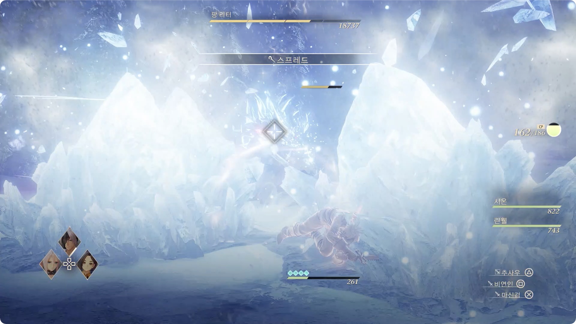 달려드는 길목에는 얼음 덩이가 생기는데, 이 공격 또한 한방에 즉사할정도의 대미지를 입기 때문에 팽 리터가 뭔가 힘을 모은다면 무조건 피할 준비를 하는것이 좋습니다.