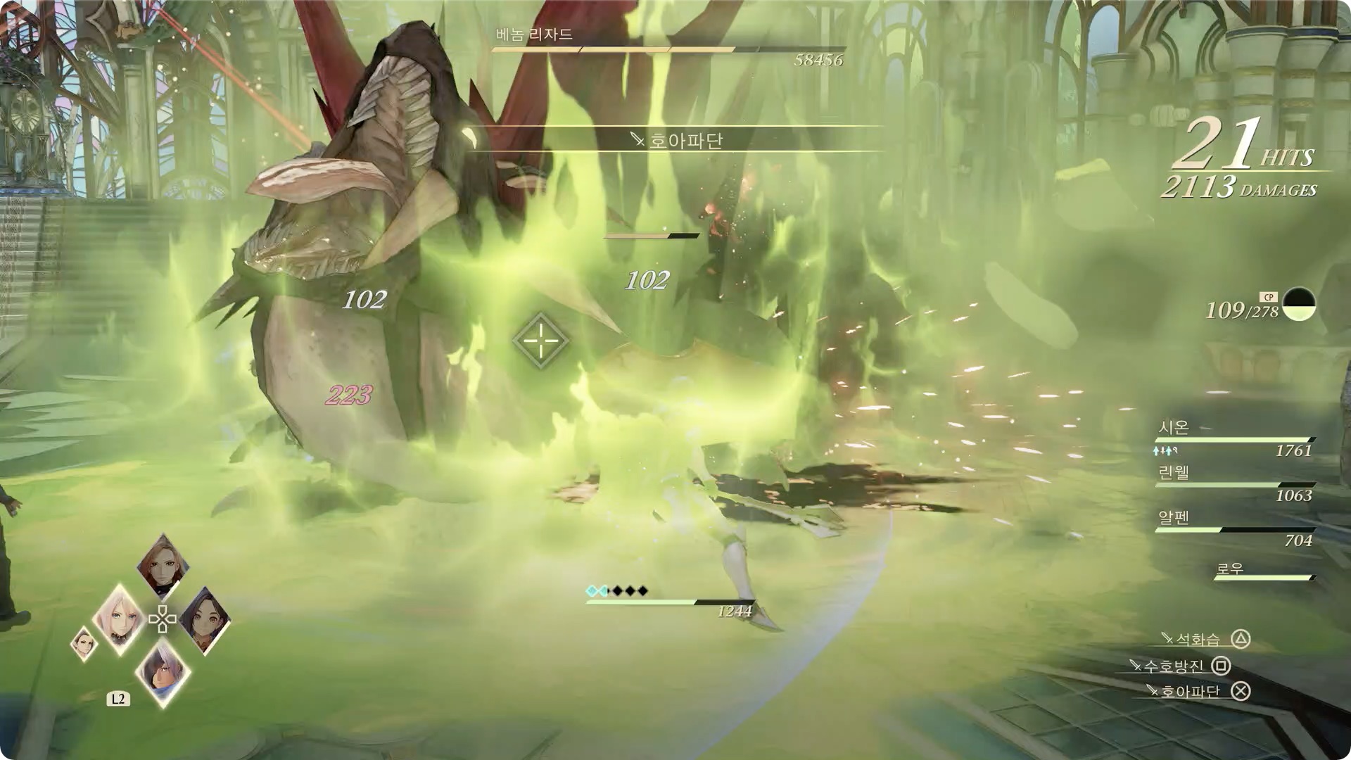 이후 체력이 50% 이상이라면 혀바닥 공격으로 이어지며, 50% 미만이라면 돌진 패턴으로 이어집니다.
