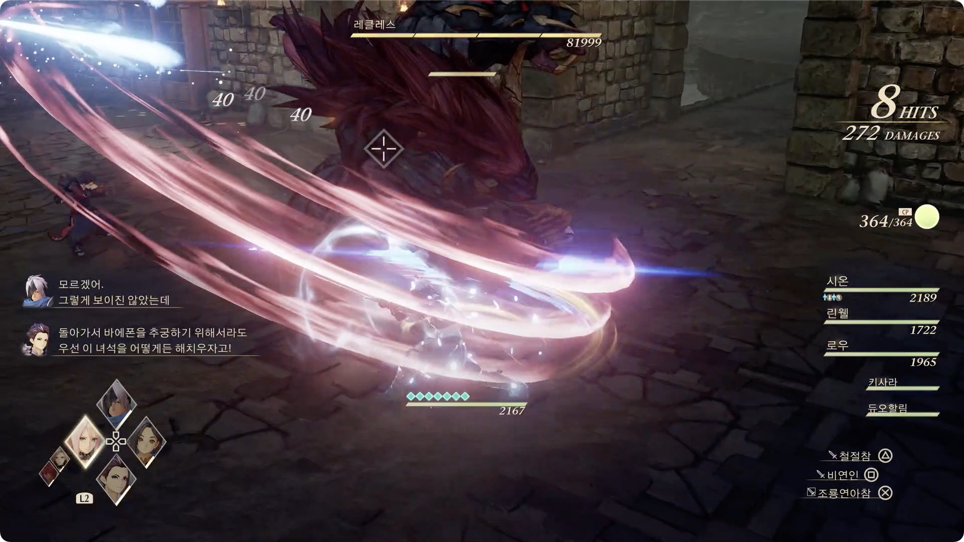 아래쪽 샘플 영상 시작부터 약 2:30까지 전투 참고