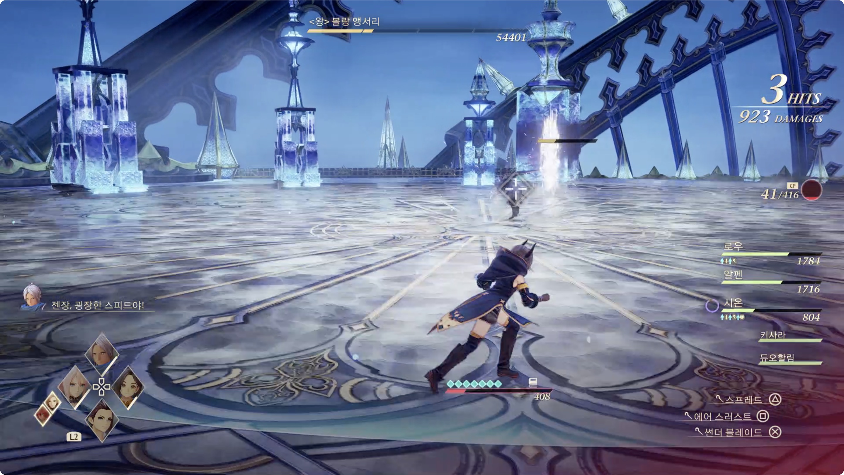02. 바닥이 하얗게 변화하면 커다란 얼음 덩어리가 떨어지고 거대한 고드름을 발생시키는 공격을 해오니 주의.