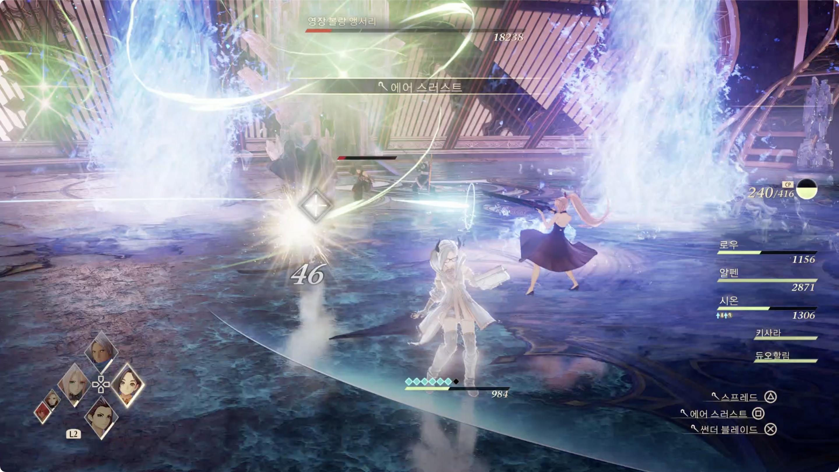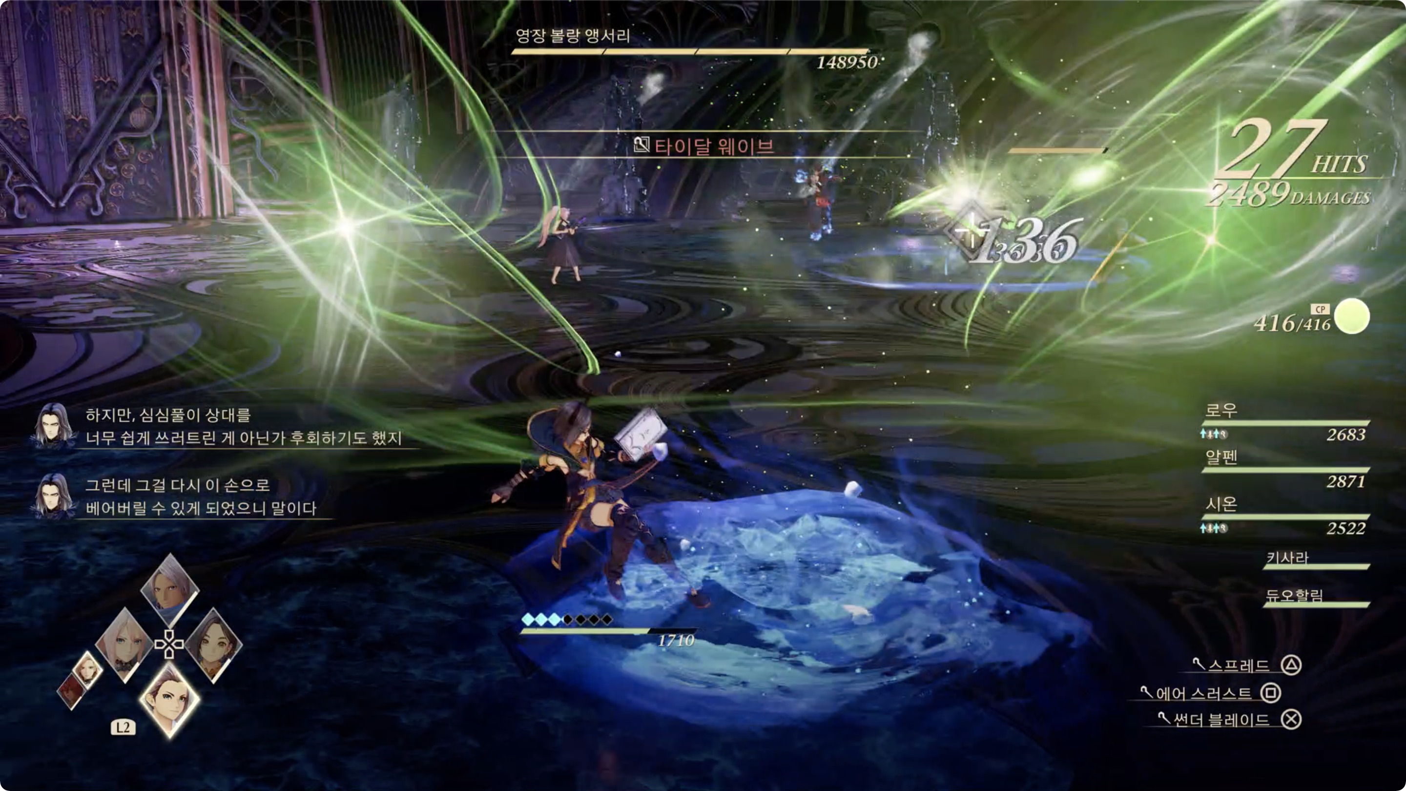 03. 1차전에선 오의를 사용하게되면 거대한 물기둥이 뿜어져 나오니 주의