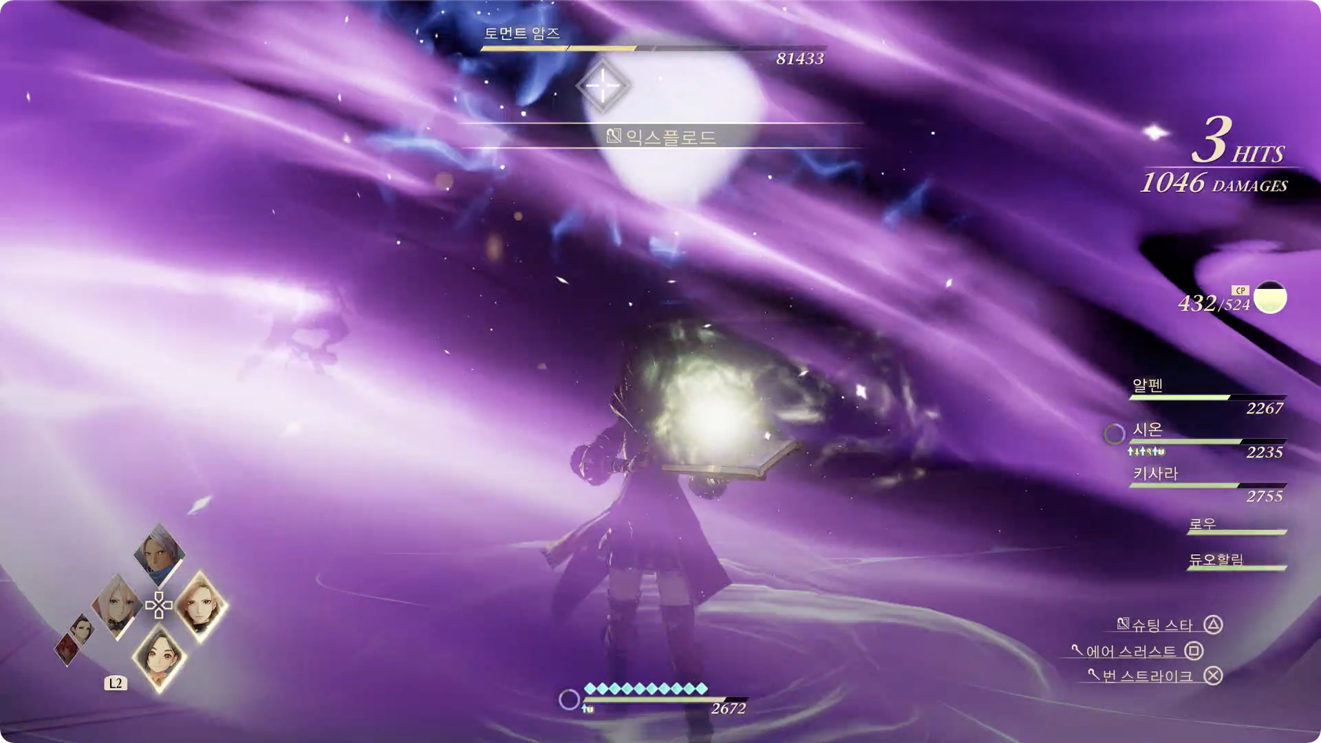 04. HP 50% 미만이 되면 몸을 회전하며 보라색 구체를 만들어 내는데, 순간이동 공격(나오는 순간 피격판정)이니 주의하도록 하자.