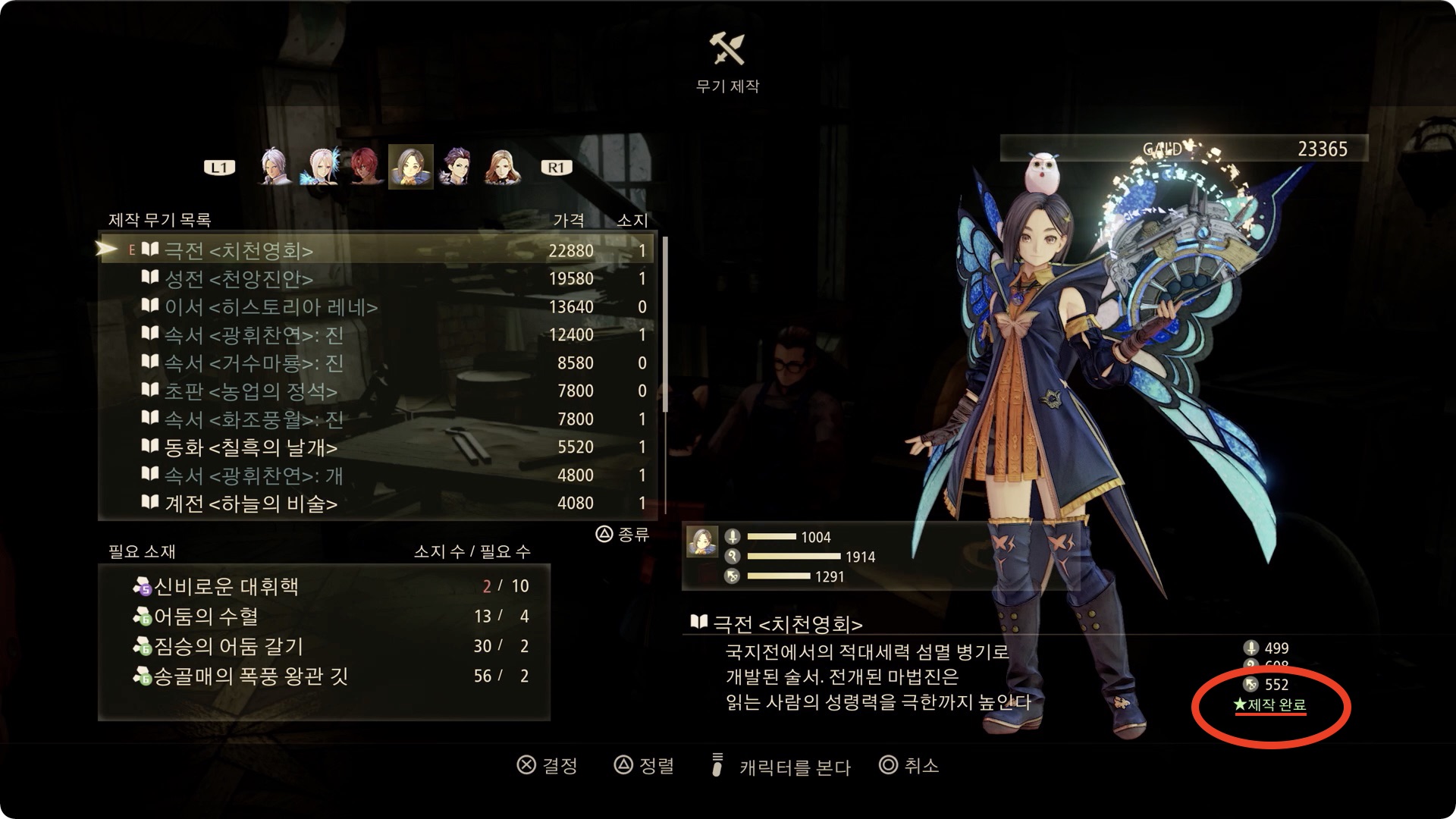 한번이라도 만든 적이 있는 무기는 오른쪽 밑에 ★제작 완료 라는 표시가 나오기 때문에 미리 확인하여 만든적 없는 무기를 제작하면 됩니다.