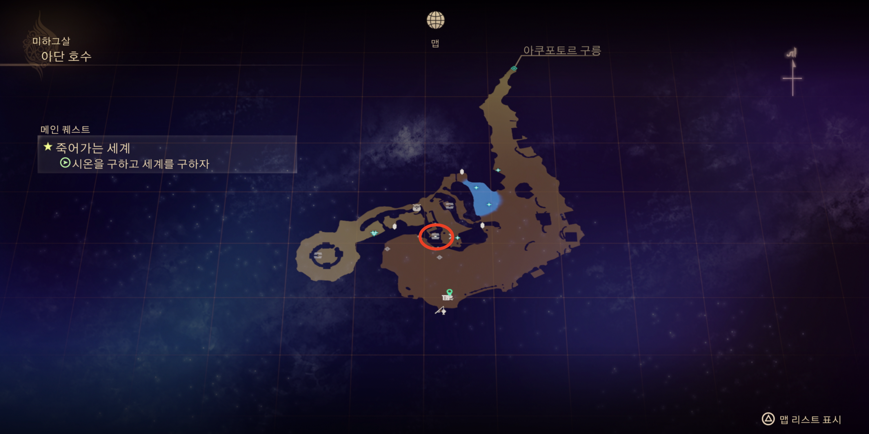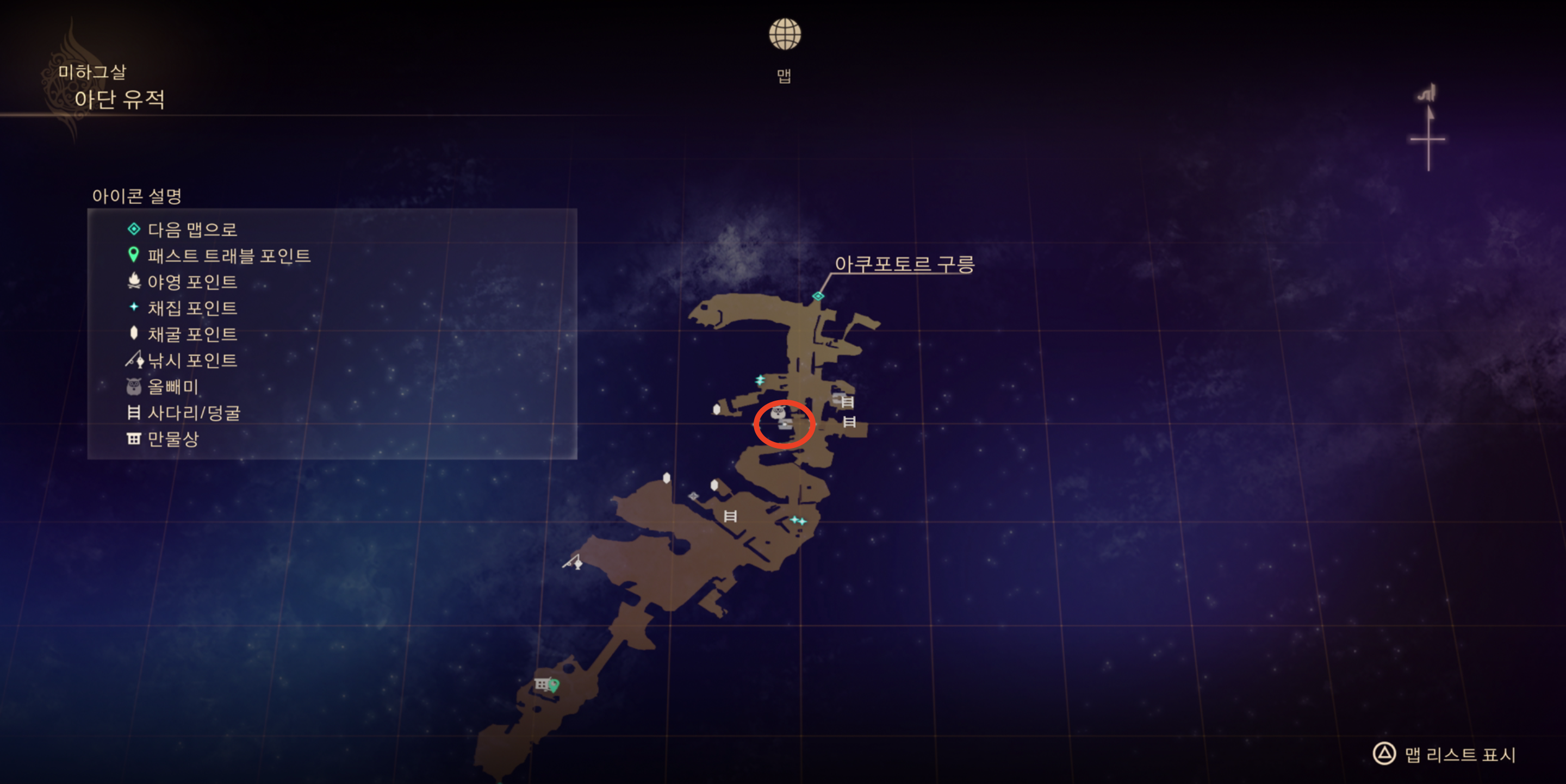 | 서브서피스 미라주 | 미하그살 > 아단 유적(보물상자) *아래 스샷 (3) 참조 |