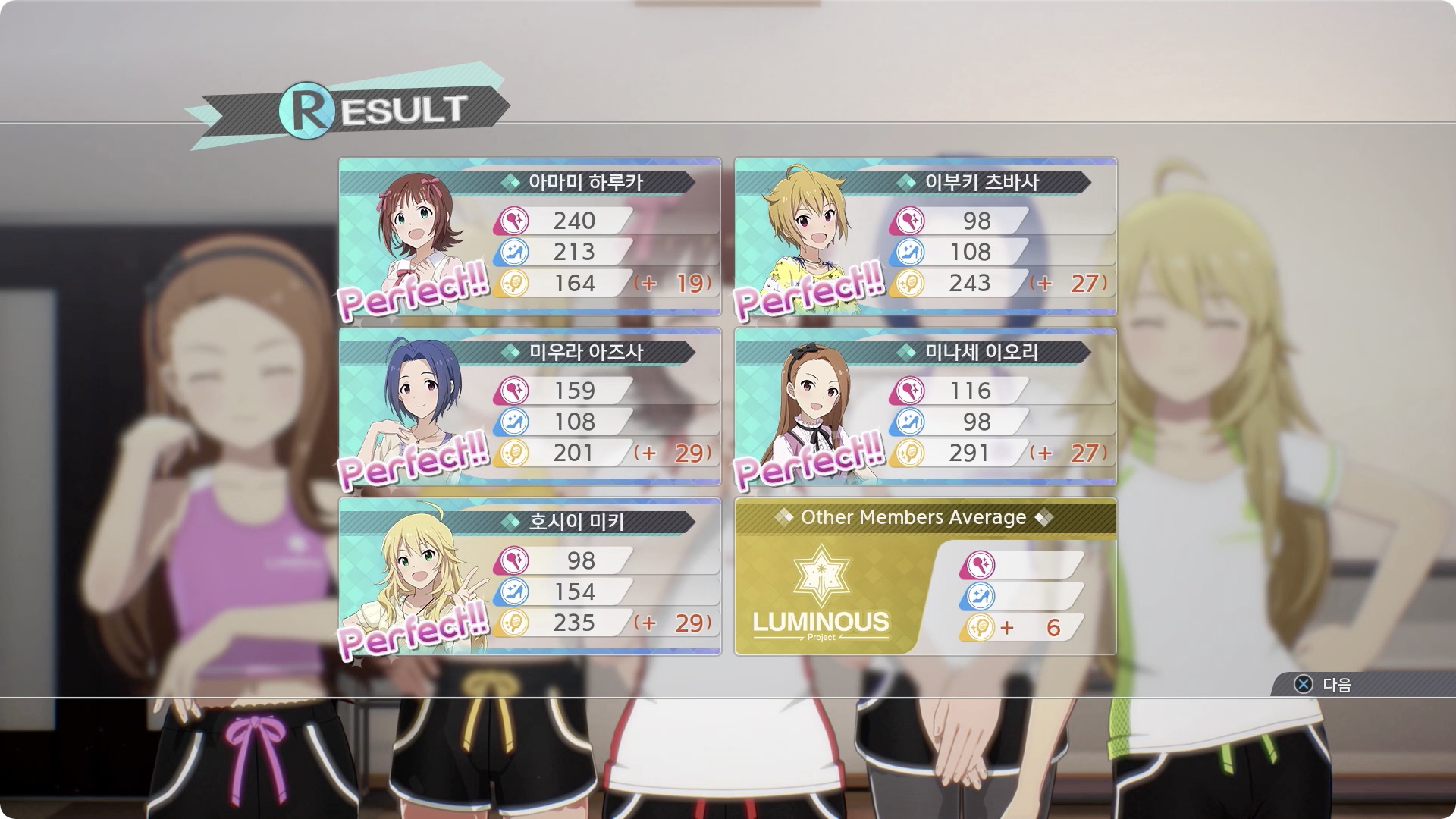대체로 강력한 성장폭을 가진 아이돌들은 본가에 몰려있으며, 코하쿠의 경우 모든 능력치가 중이니 틈틈히 올려보는것도 좋을듯합니다.