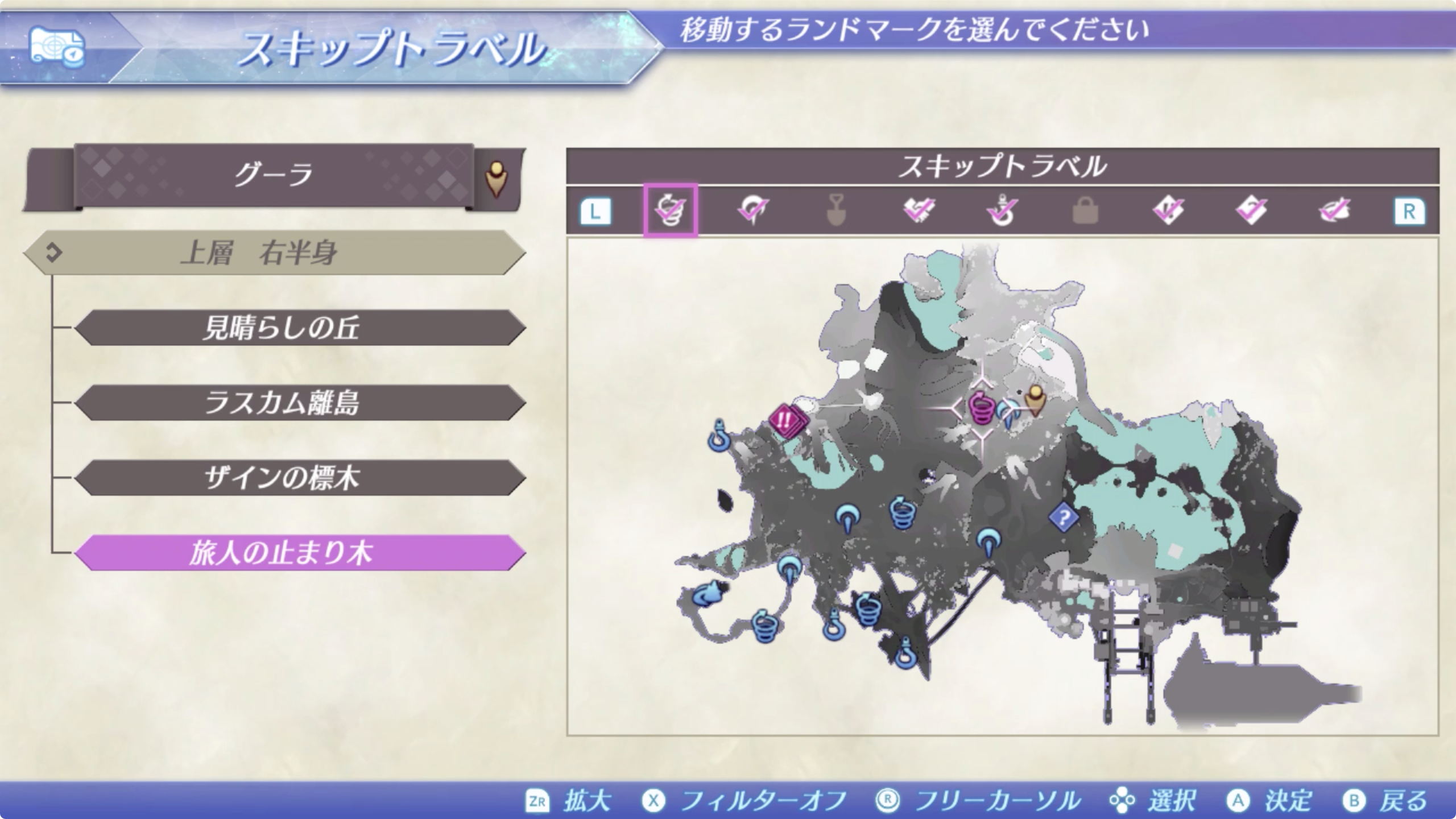 운해가 높아진것을 확인한 후, 스킵 트래블을 이용해 상층 우반신(上層 右半身) > 전망의 언덕(見晴らしの丘) 으로 이동한 후 아래쪽의 길을 따라 이동하자.