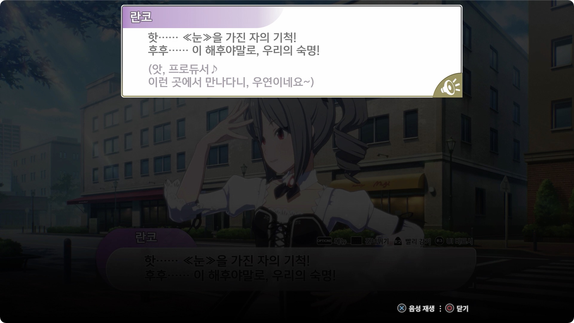 'OPTION'키를 눌러 메뉴를 연 후, 백로그를 확인하면 란코어의 번역본을 확인 할 수 있습니다.