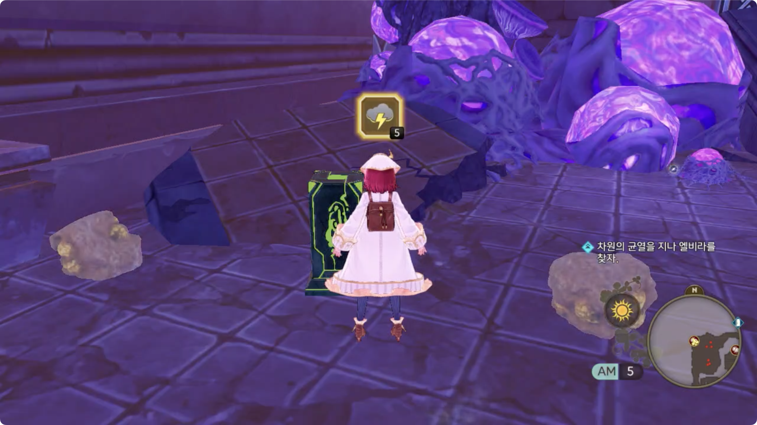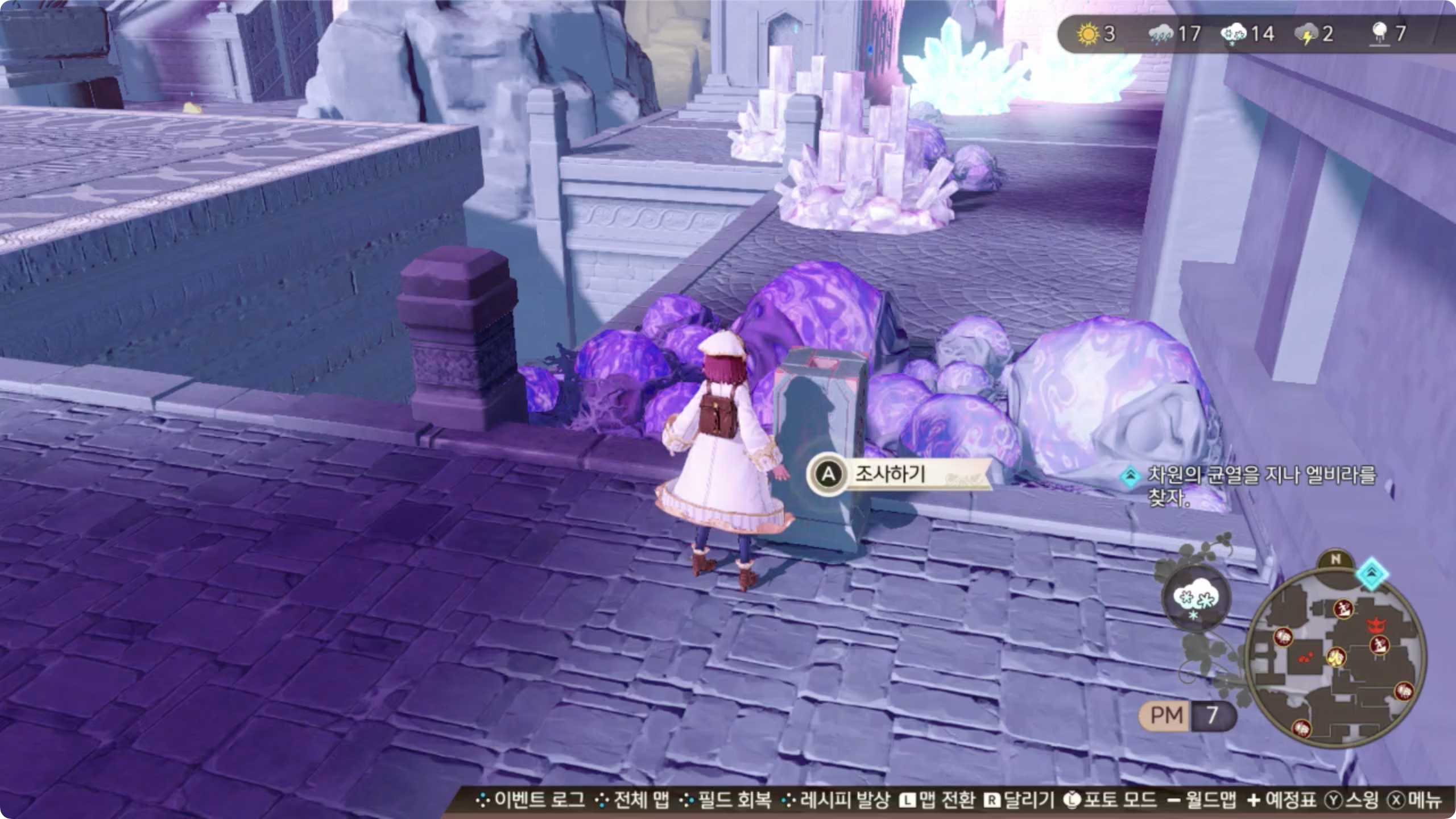 번개 날씨로 변경한 후 남동쪽 끝으로 이동. 보물상자 바로 옆에 있는 비석을 이용해 날씨를 눈으로 변경.