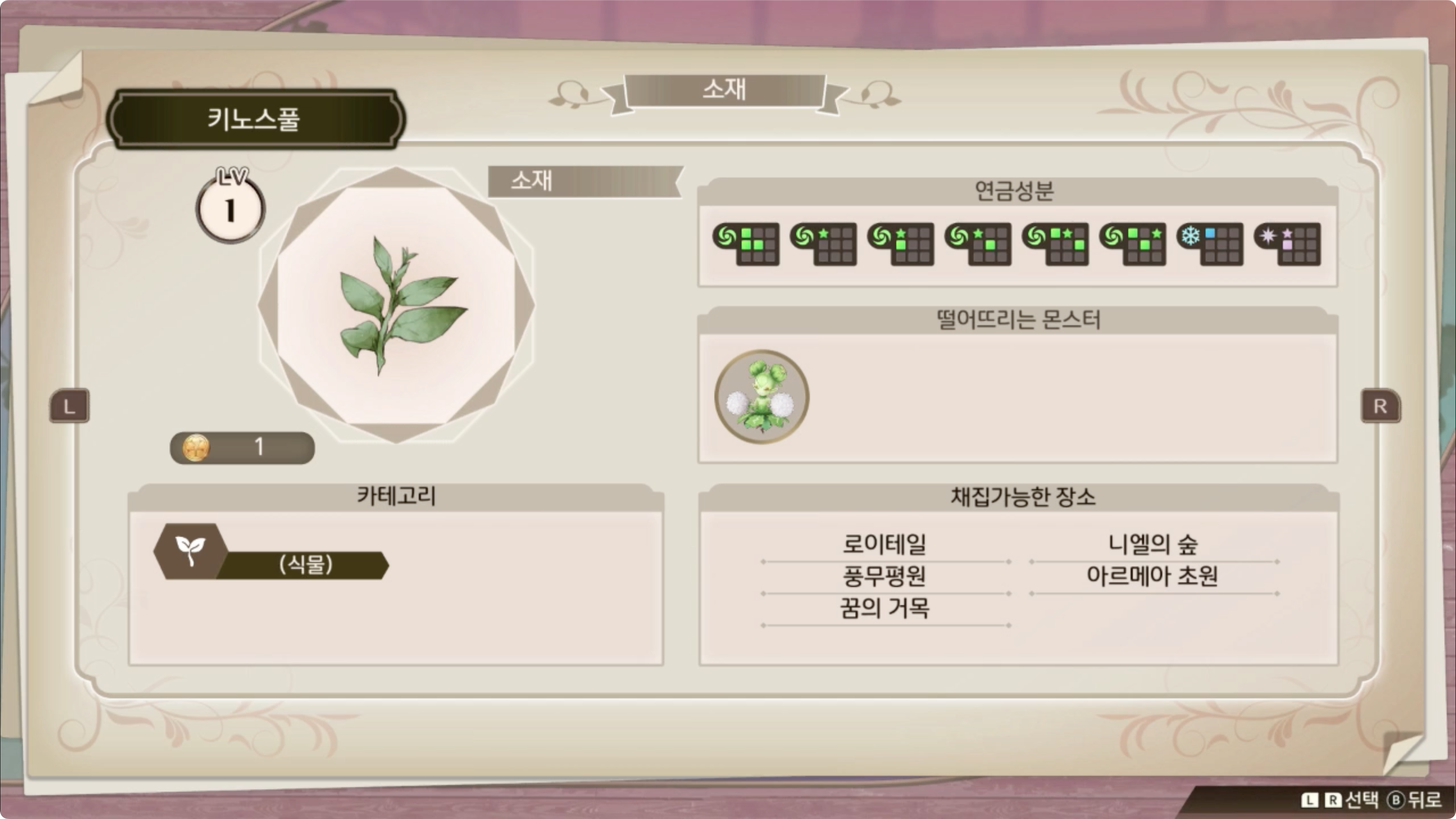 소피의 아틀리에2 - 도감(소재) : 10. 키노스풀(キノス草)