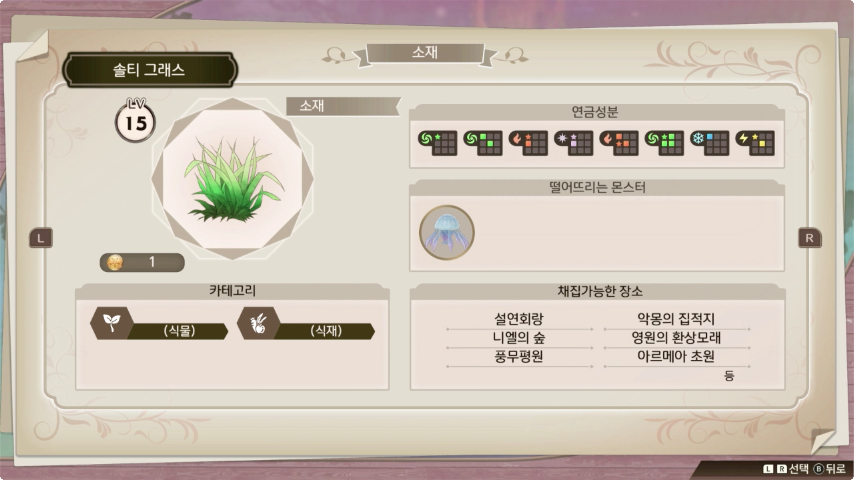 | 소피의 아틀리에2 - 도감(소재) : 10. 키노스풀(キノス草) (0) | 2022.05.06 |