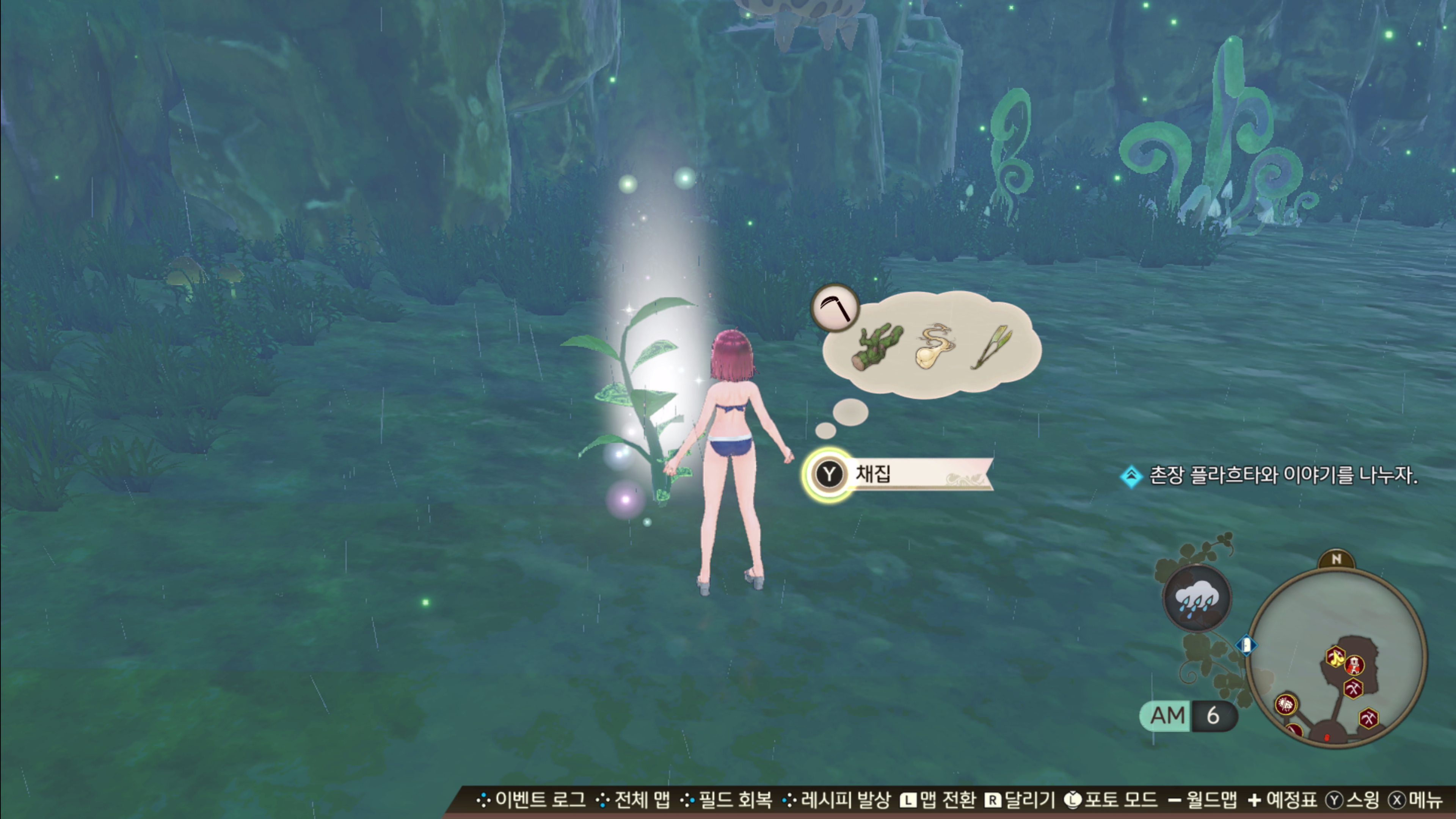 동쪽 포인트에서 중앙에서 북쪽 부근의 비석으로 날씨를 비로 변경. 북쪽 대채집 포인트로 이동. (낫 랭크3 필요)
