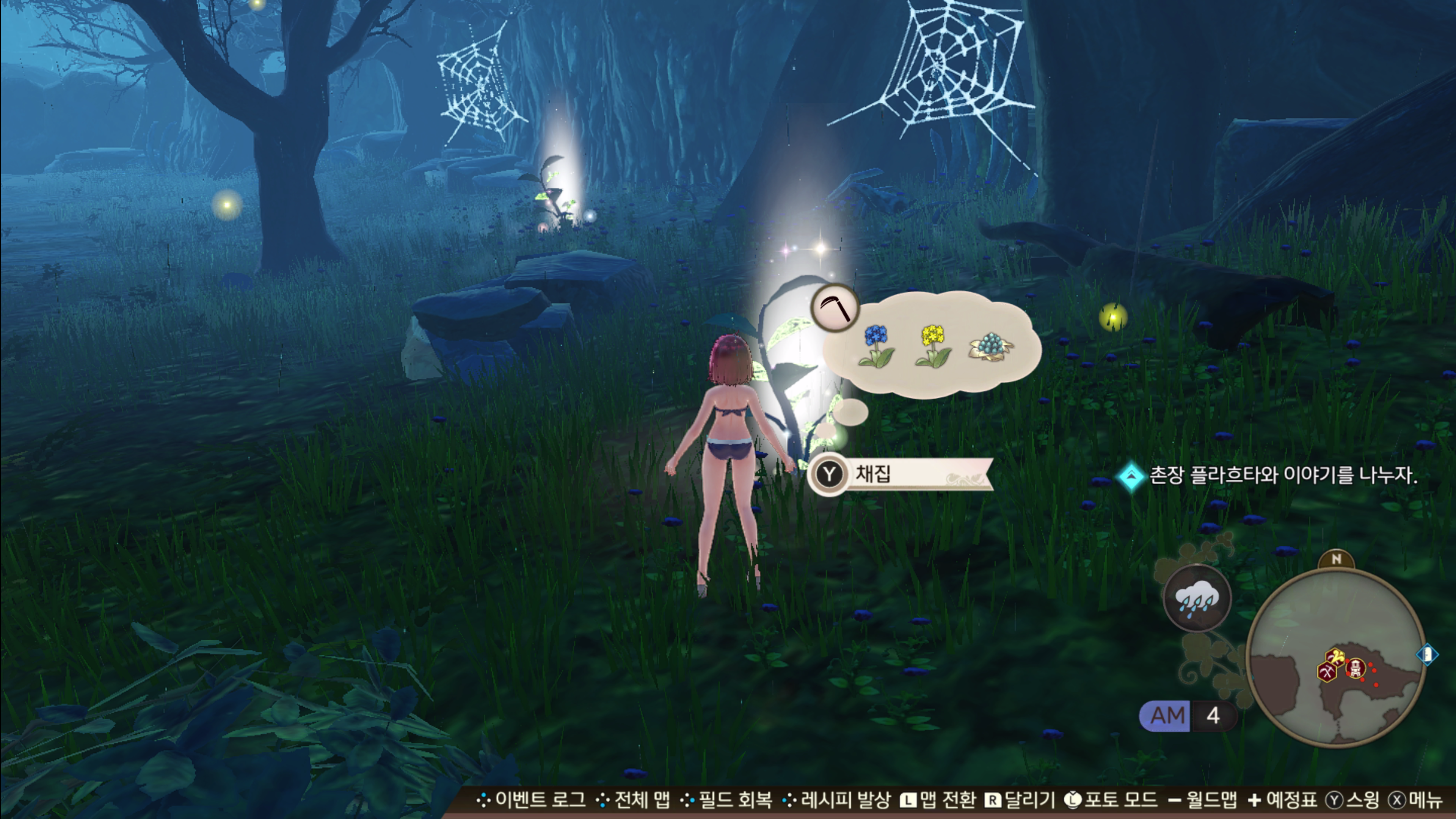 동쪽의 비석으로 날씨를 비로 변경할 수 있음. 주변의 붉은 꽃 포인트가 모두 푸른 꽃으로 바뀌며,