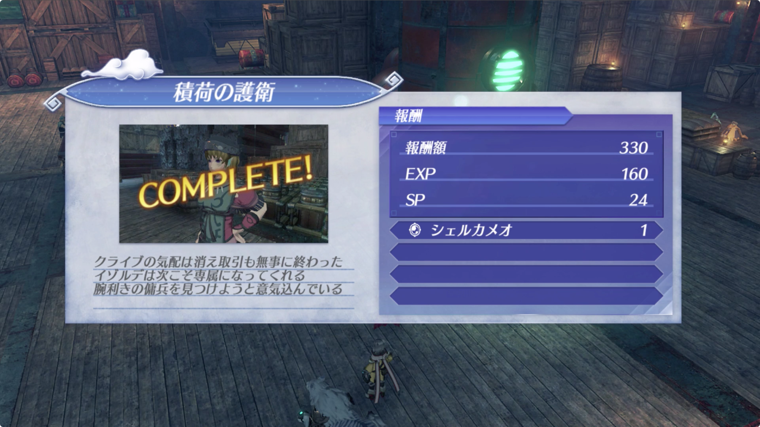 발생 조건 : 제 1 화 만남에서, 중앙교역소 중앙 교역소에 있는 이졸데(イゾルデ)에게 대화를 걸면 발생