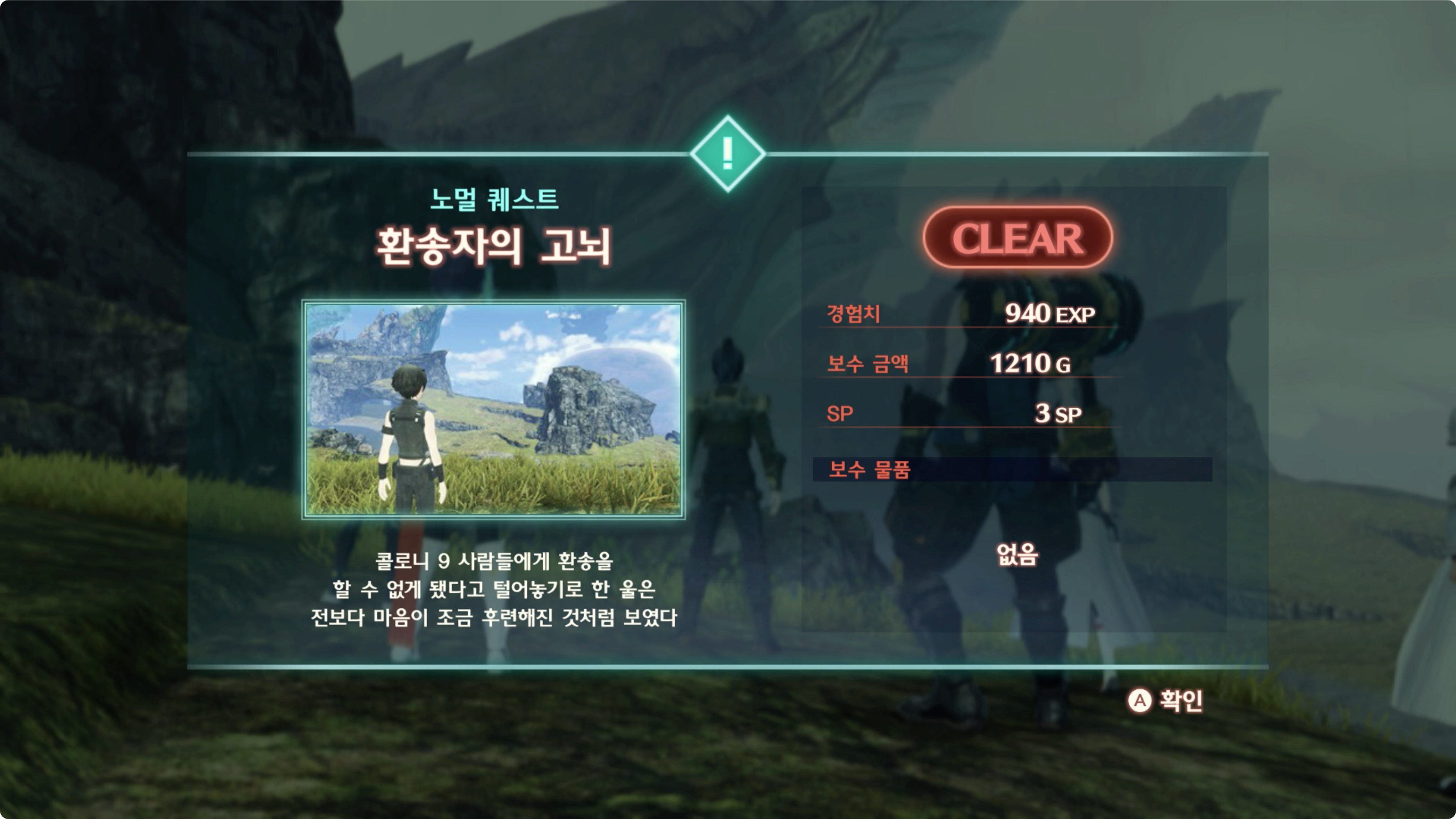 ▷ 콜로니 9에서 「콜로니 9의 환송자」 정보 획득 후 상담