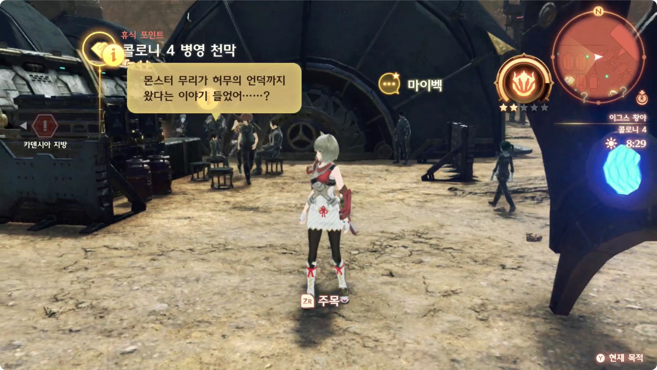 ▷ 포니스 지방 콜로니4에서 「몬스터 무리」정보를 입수 후, 상담한다