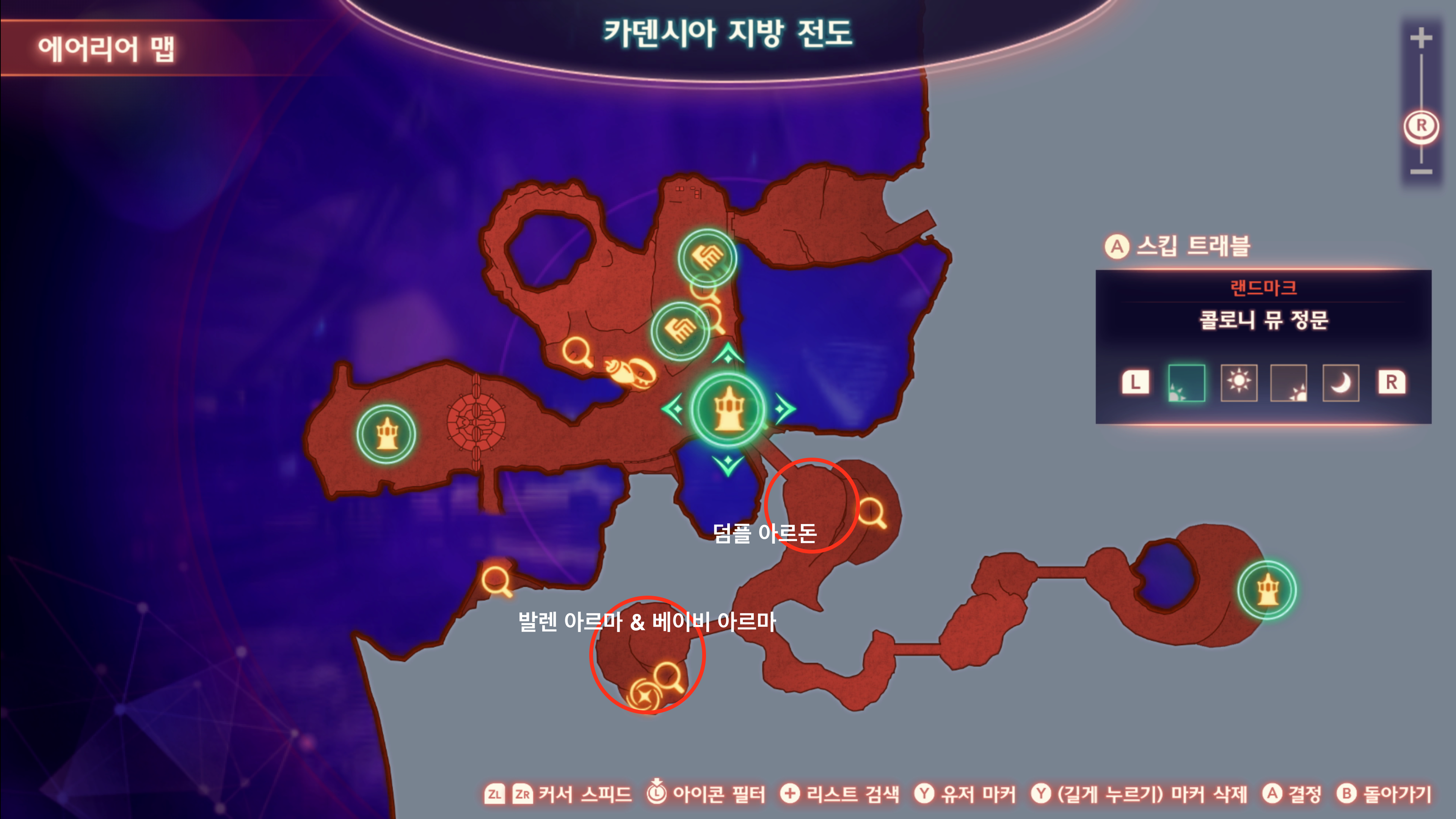 • 향기로운 아르돈 고기 x3 - 콜로니 뮤 정문 부근. 덤플 아르돈을 쓰러뜨려 입수 가능(위치는 하단 지도 참조)