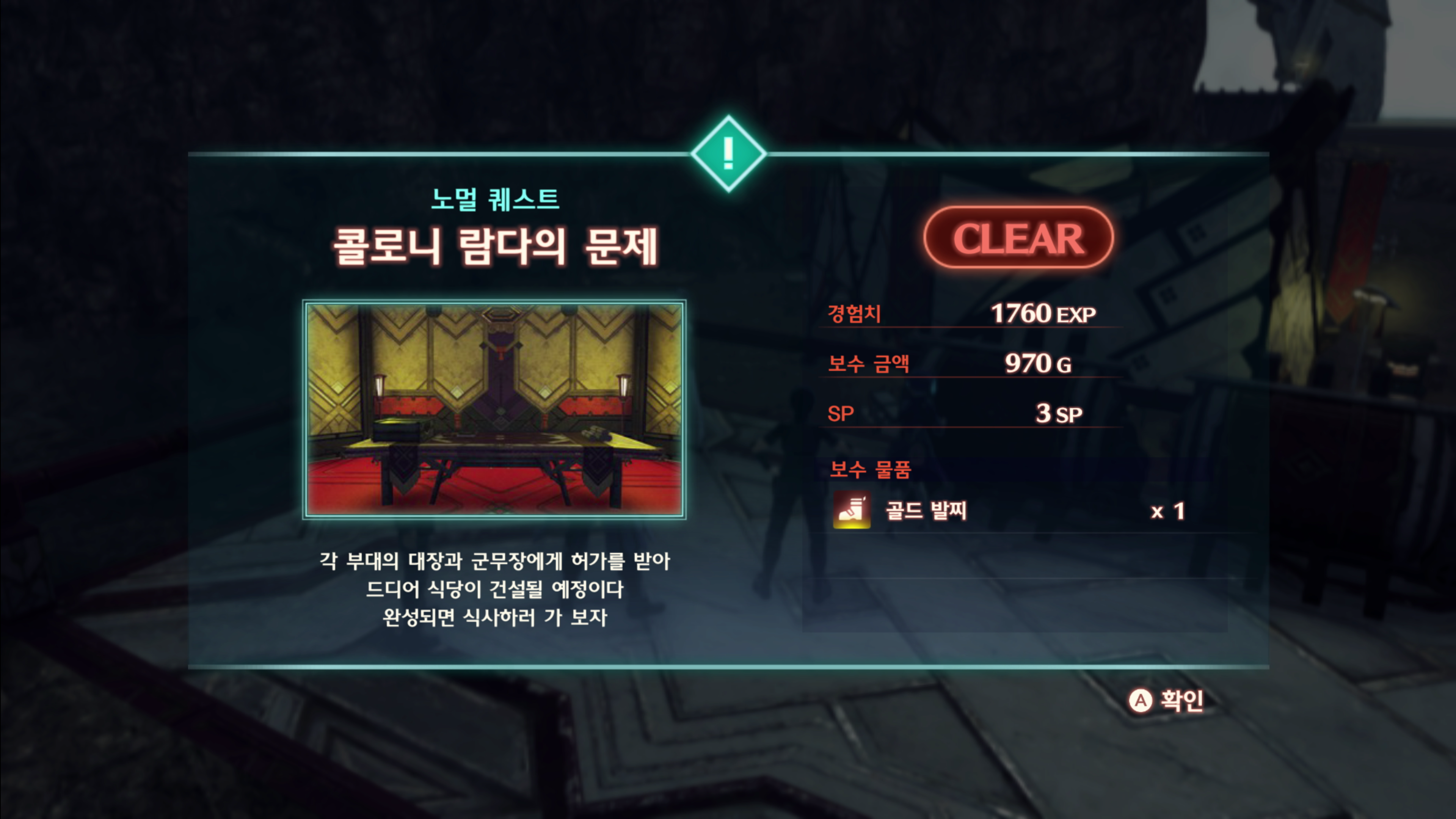 ▷ 펜테라스 지방 콜로니 람다에서 「콜로니 람다의 식사 장소」 정보 입수 후, 「콜로니 람다의 식사 장소」를 상담한다