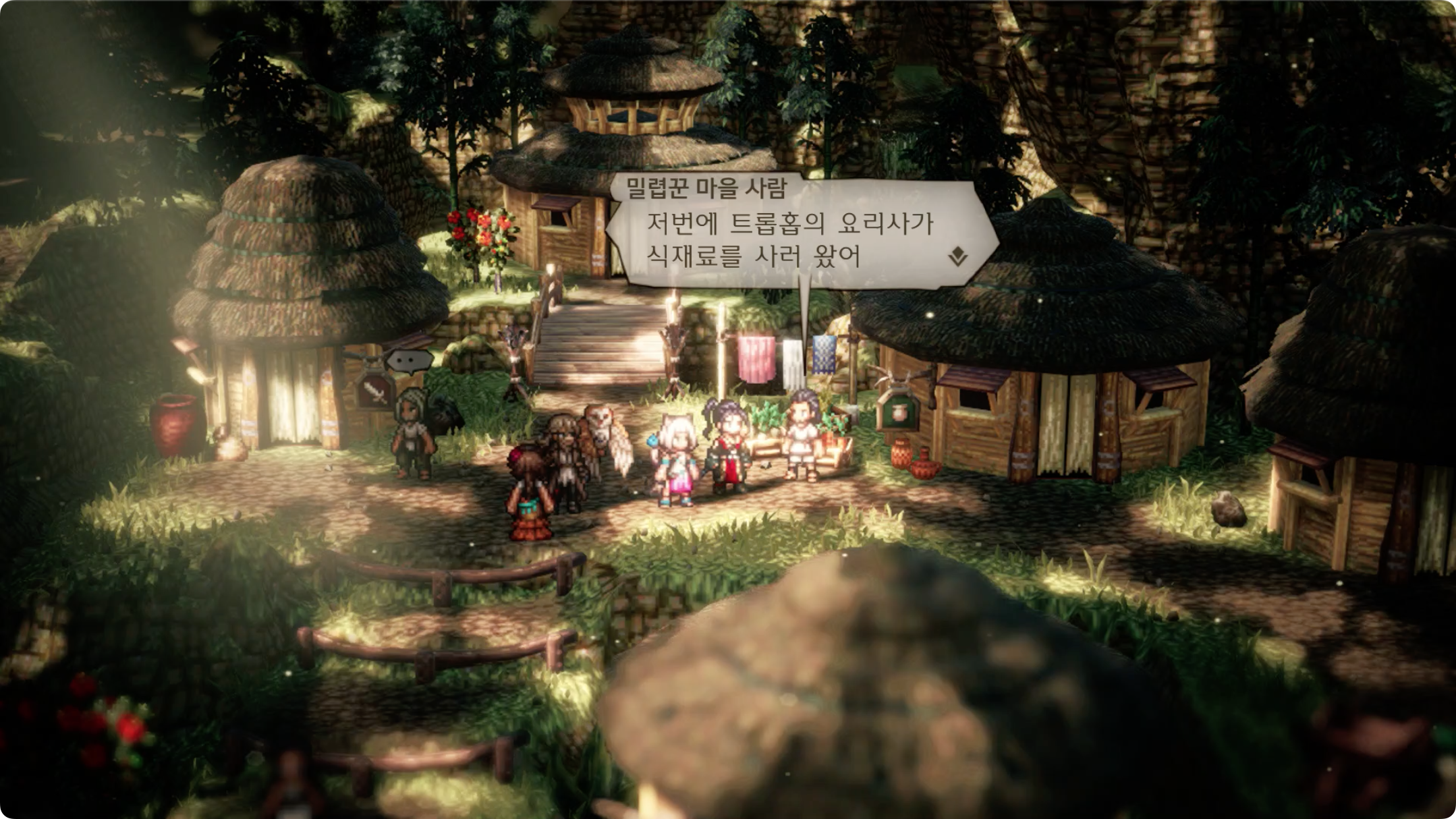 02. 케노모 마을 북동쪽의 밀렵꾼 마을 사람에게 대화를 걸어 트로홉 요리사에 대한 이야기를 듣는다.