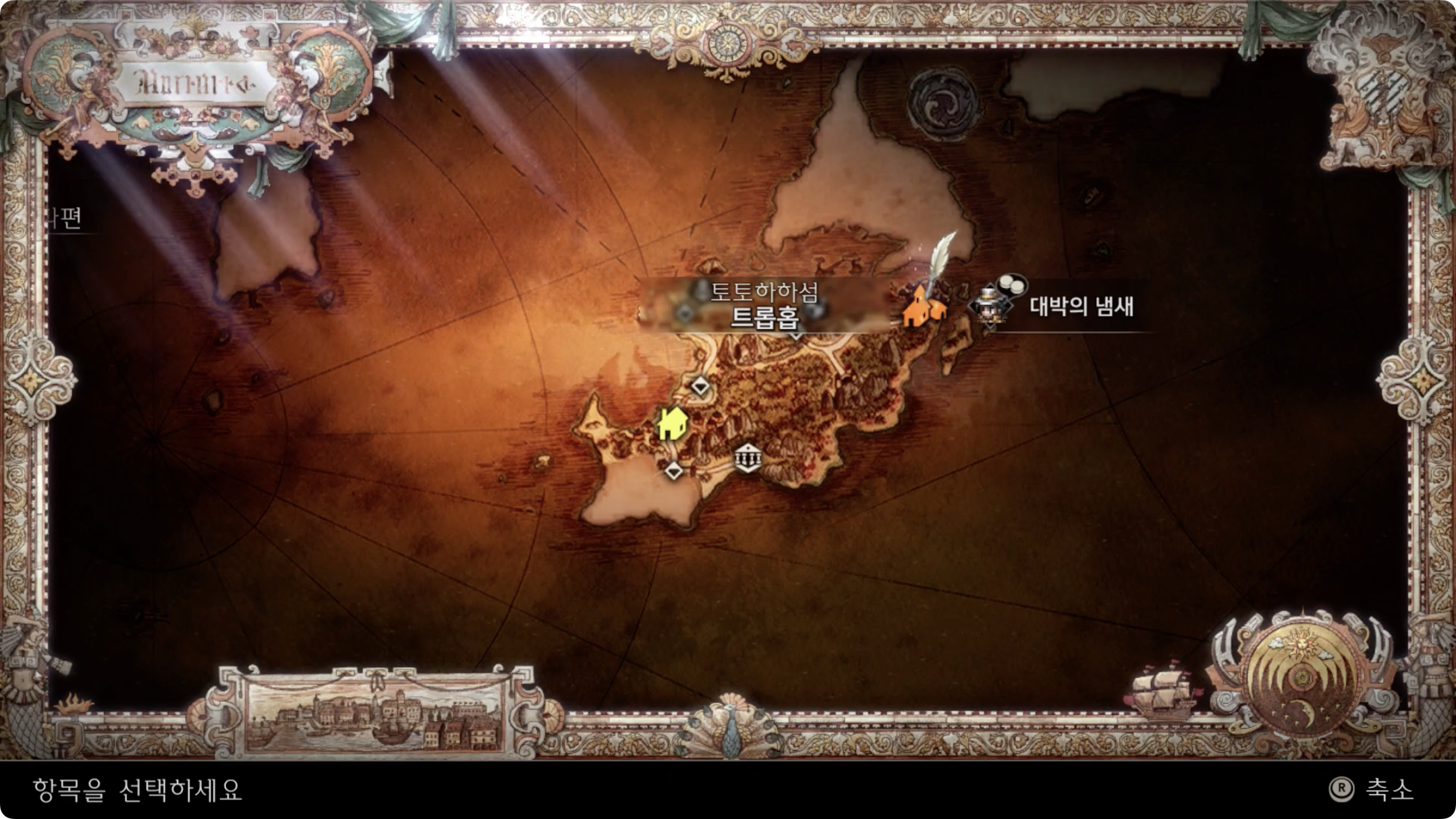 03. 트로홉 -수상 극장-에 있는 길거리 상점 요리사에게 정보 입수계 커맨드를 이용해 '매콤한 치킨 레시피'를 입수한다