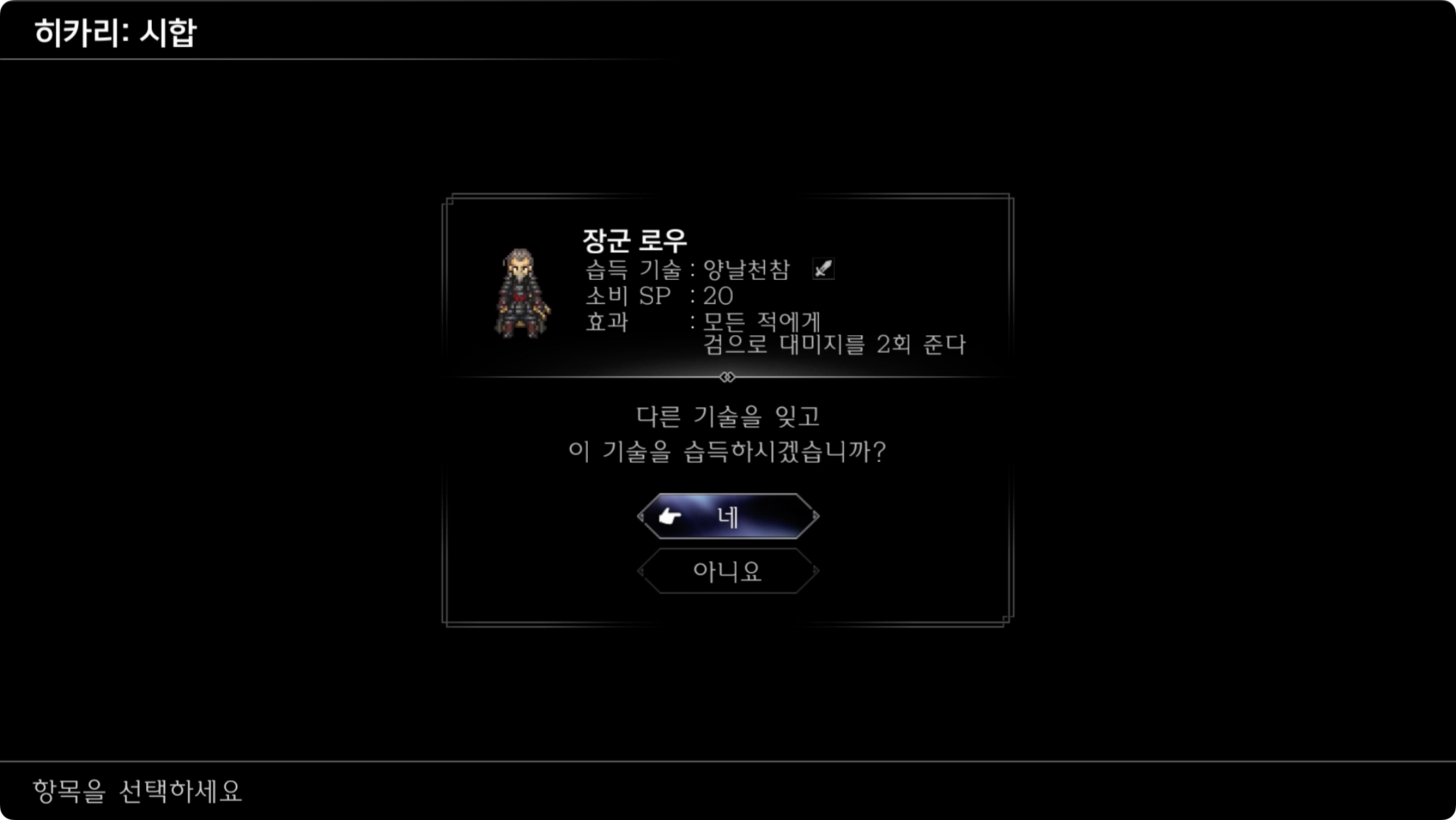 전투중 이벤트가 발생하는데 저력으로 '음의 힘'을 이용하면 전투가 종료됩니다.