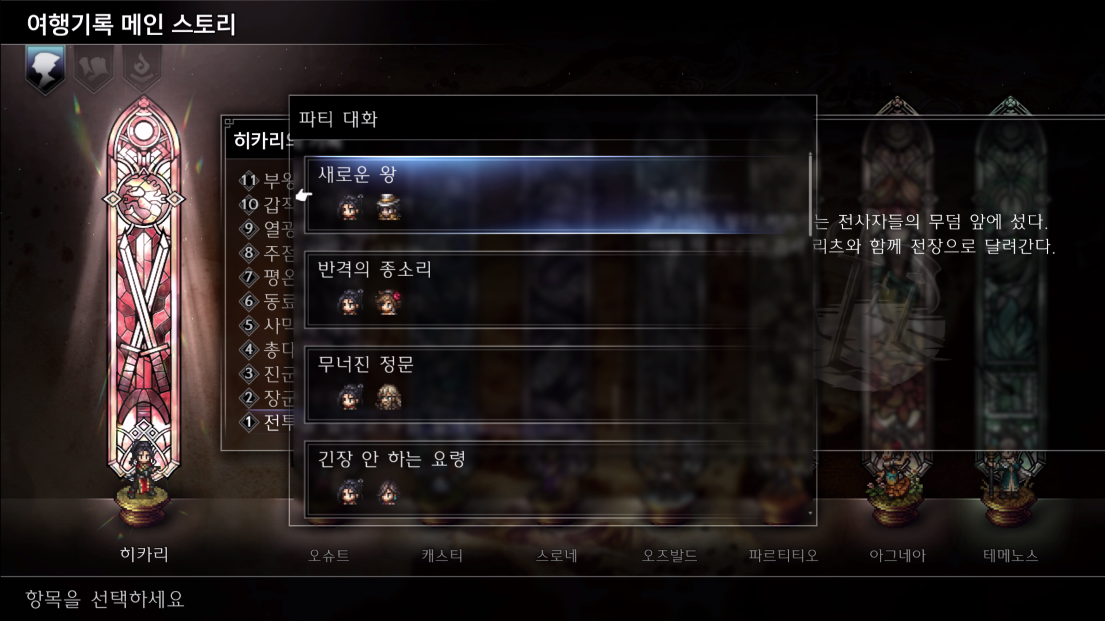 전작인 옥토패스 트래블러에서는 파티 대화를 특정 타이밍에 한정된 조건을 만족하였을때만 볼 수 있었습니다만,
