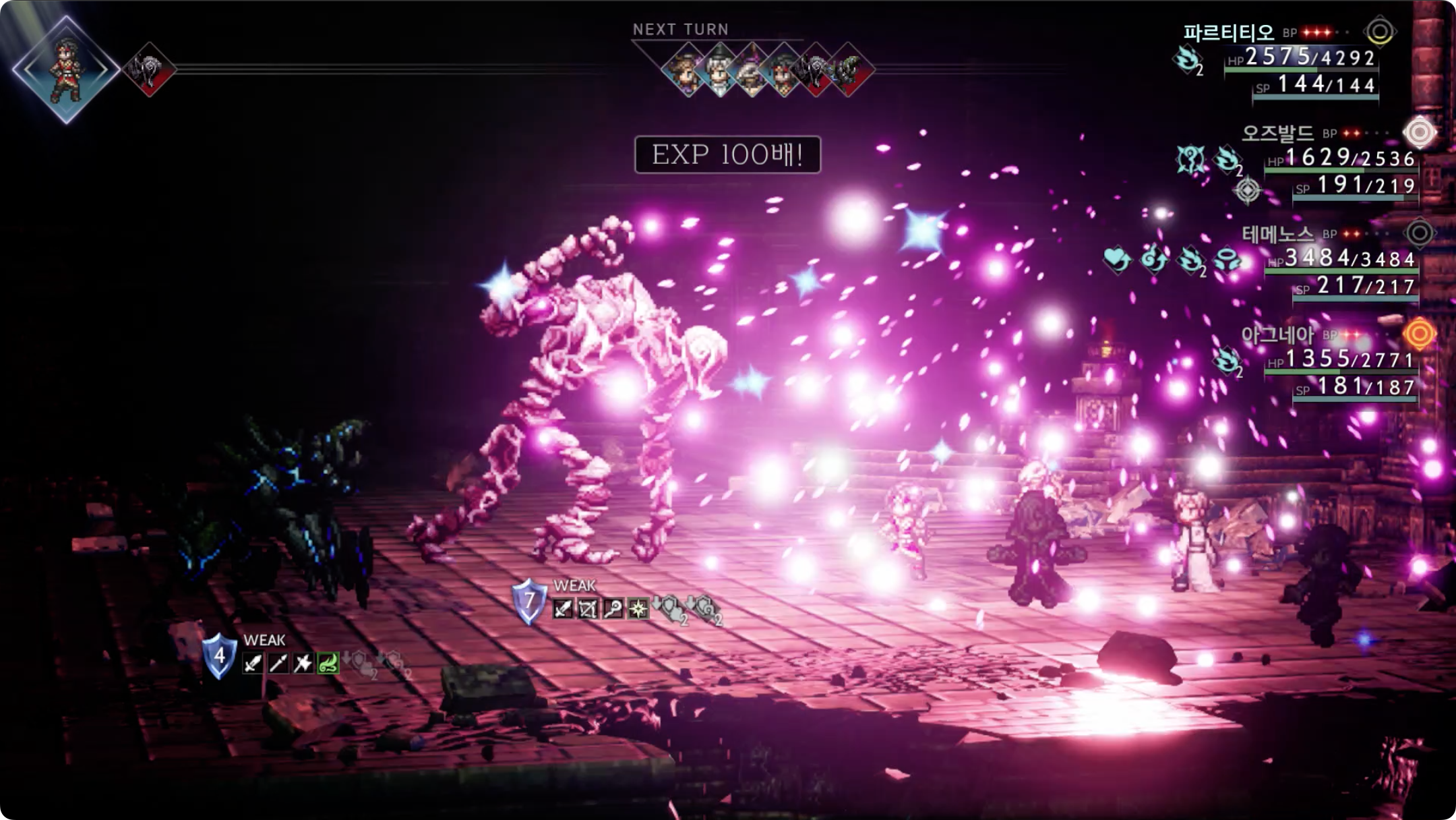 (3) 적을 모두 쓰러트리지 말고 알론드를 계속 불러내며 EXP와 JP 모두 100배가 나올때까지 반복합니다.