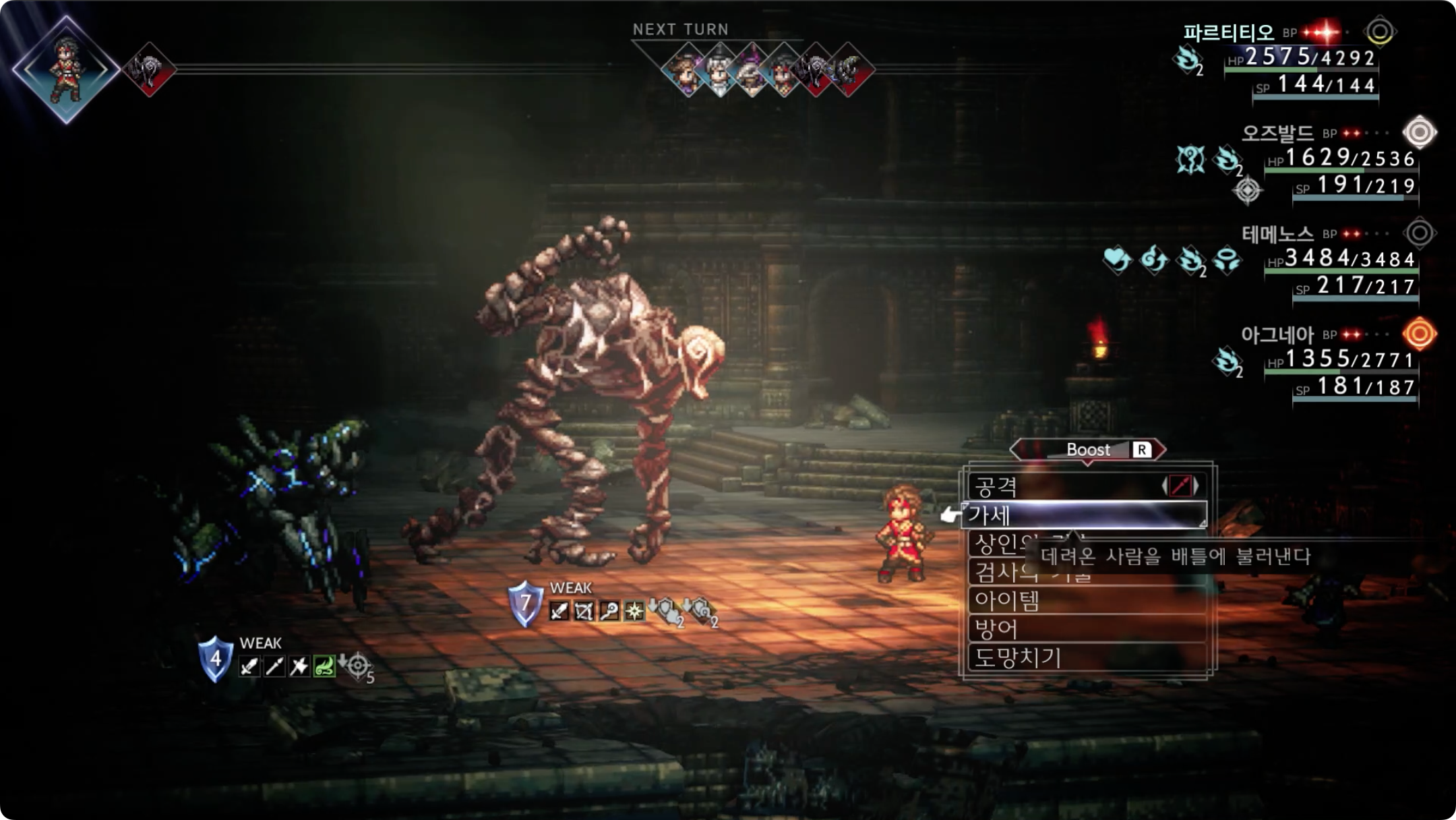 (2) 전투를 시작하면 파르티티오는 '가세'를 이용하여 '대귀족 알론드'를 불러냅니다.
