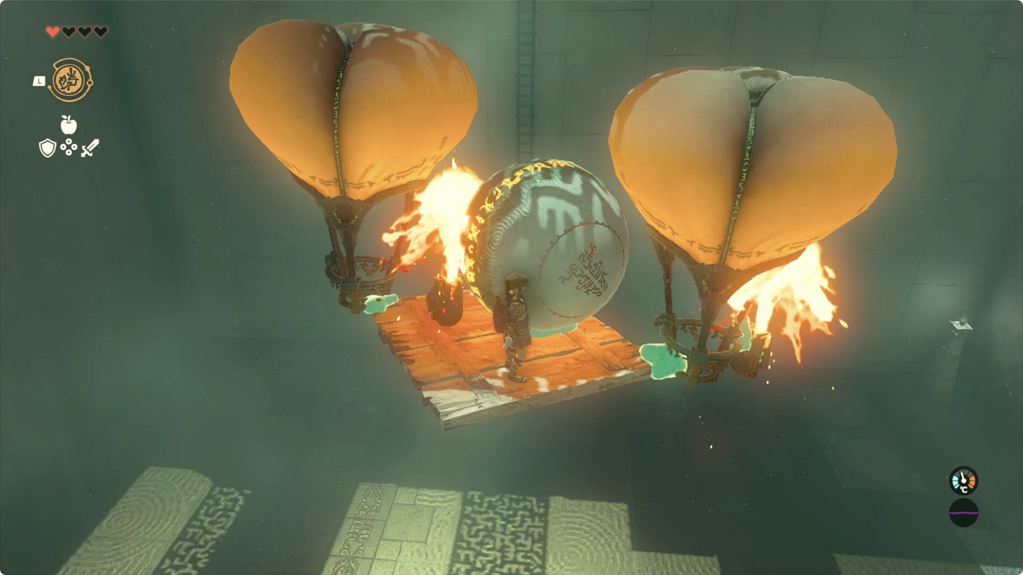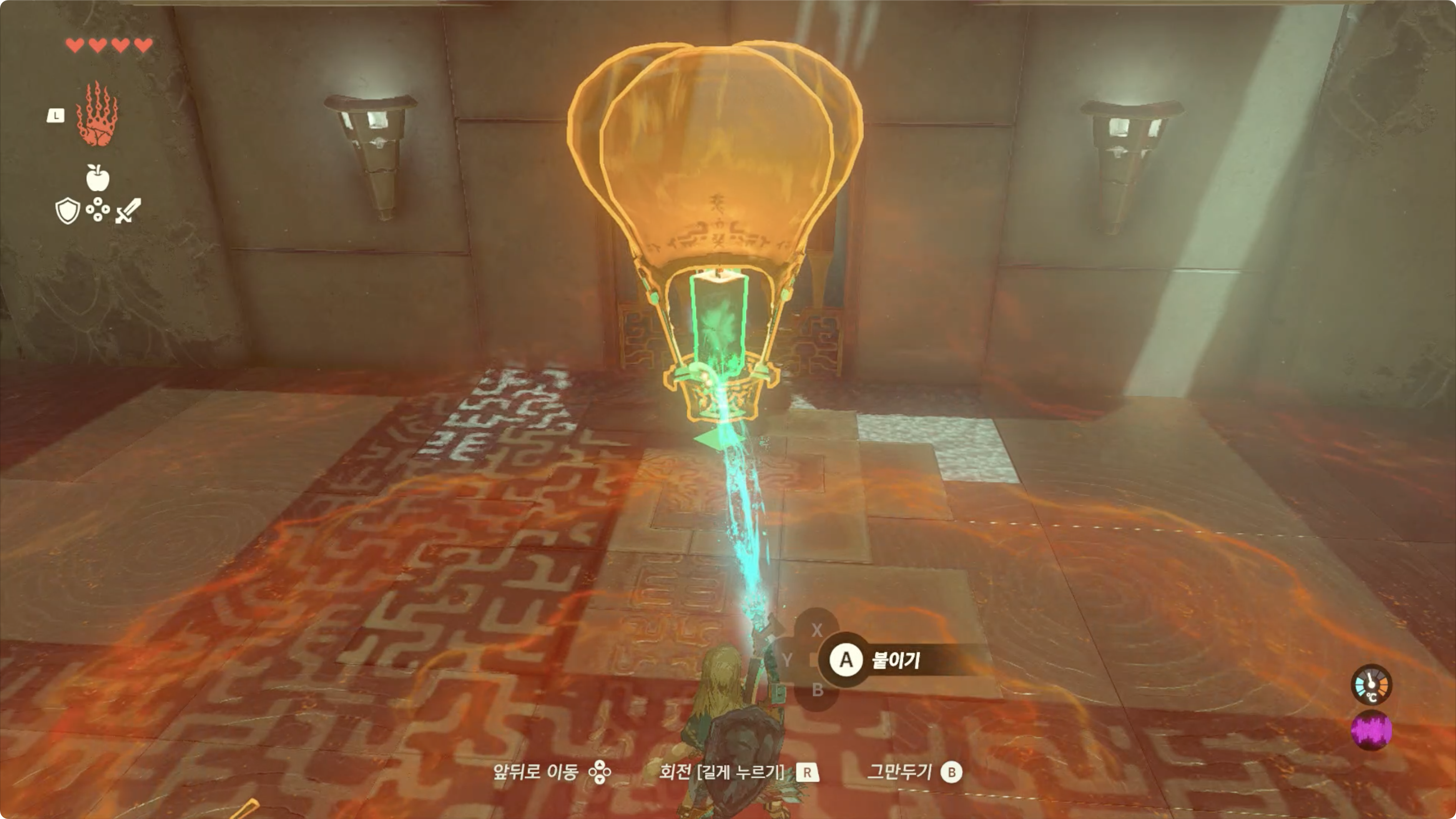 굳이 빠른 플레이를 원한다면 첫번째 방에선 발판없이 기구에 그대로 메달려 올라갈 수도 있으며, 2번째 방의 경우 기구에 먼저 구슬을 태워 보낸 후, '트레루프'를 이용해 먼저 올라가서 구슬만 빼오는 방법도 있습니다.