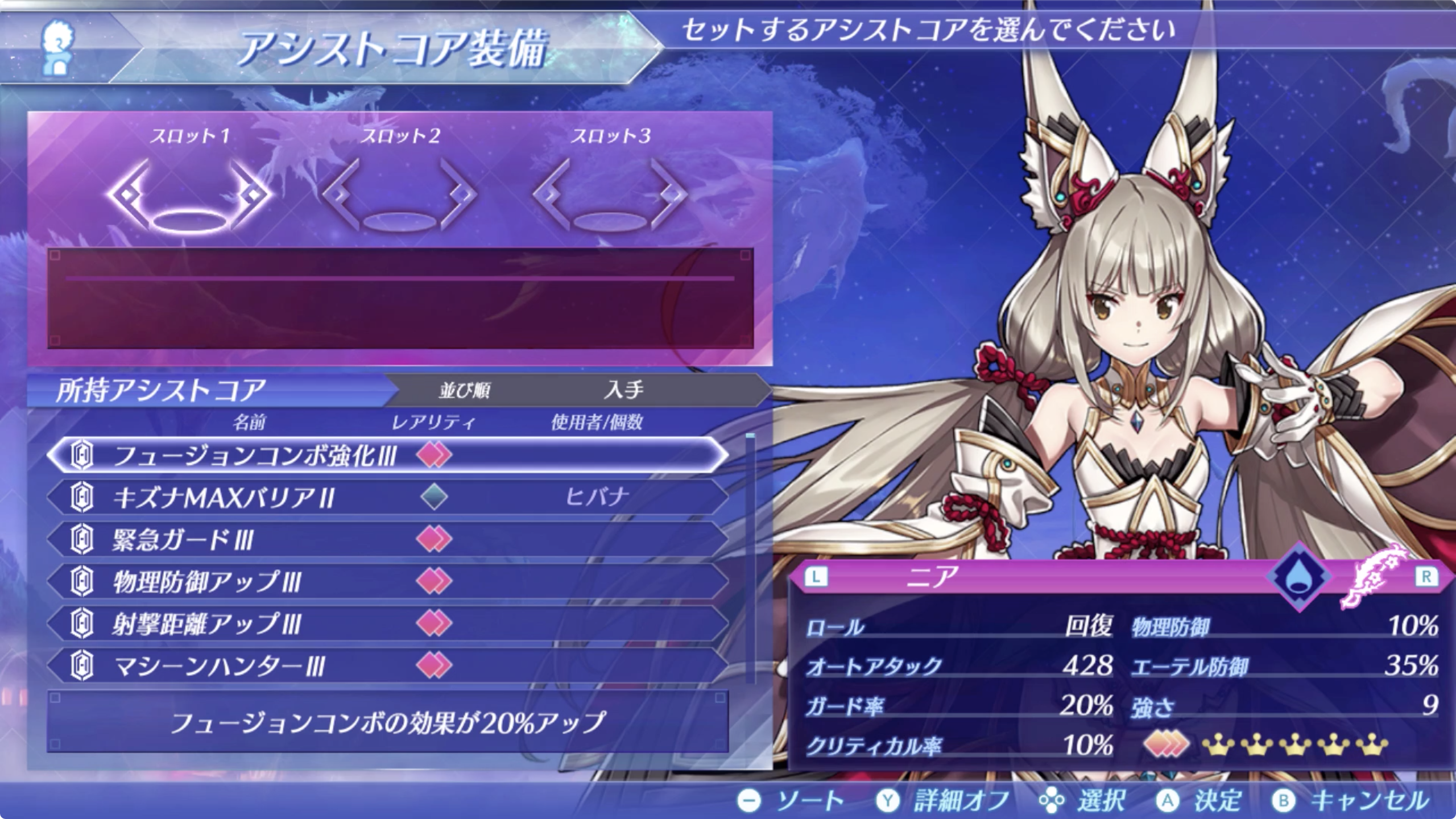 메인메뉴 > 캐릭터 > 드라이버인 니아를 선택하여 Y 버튼
